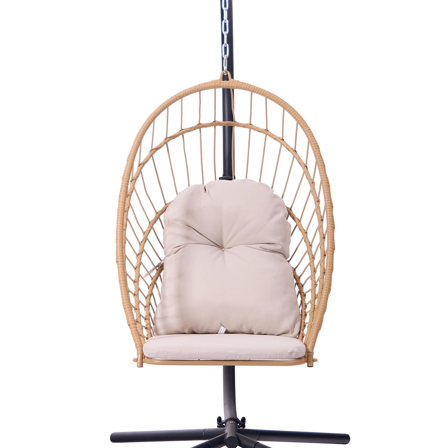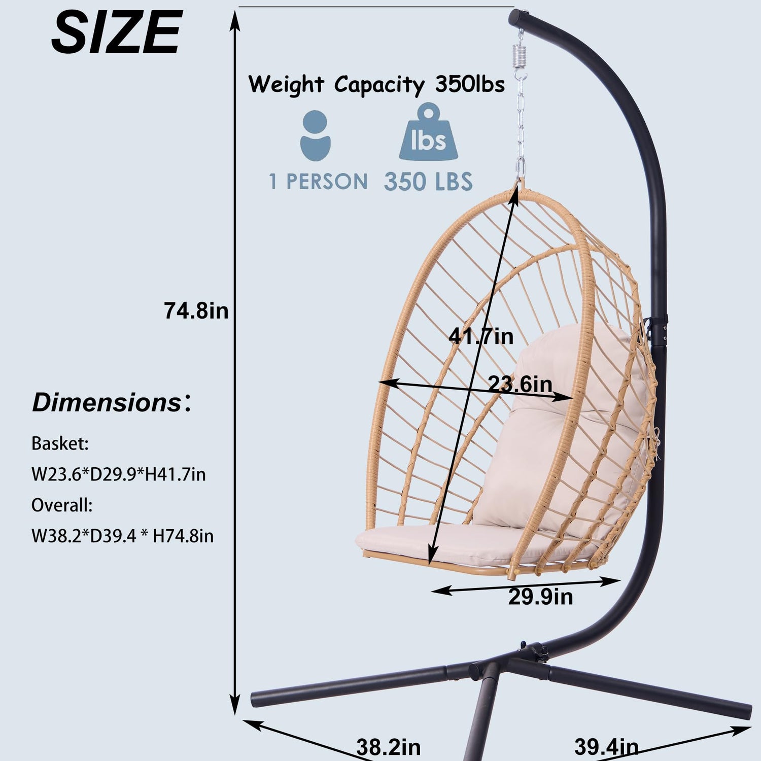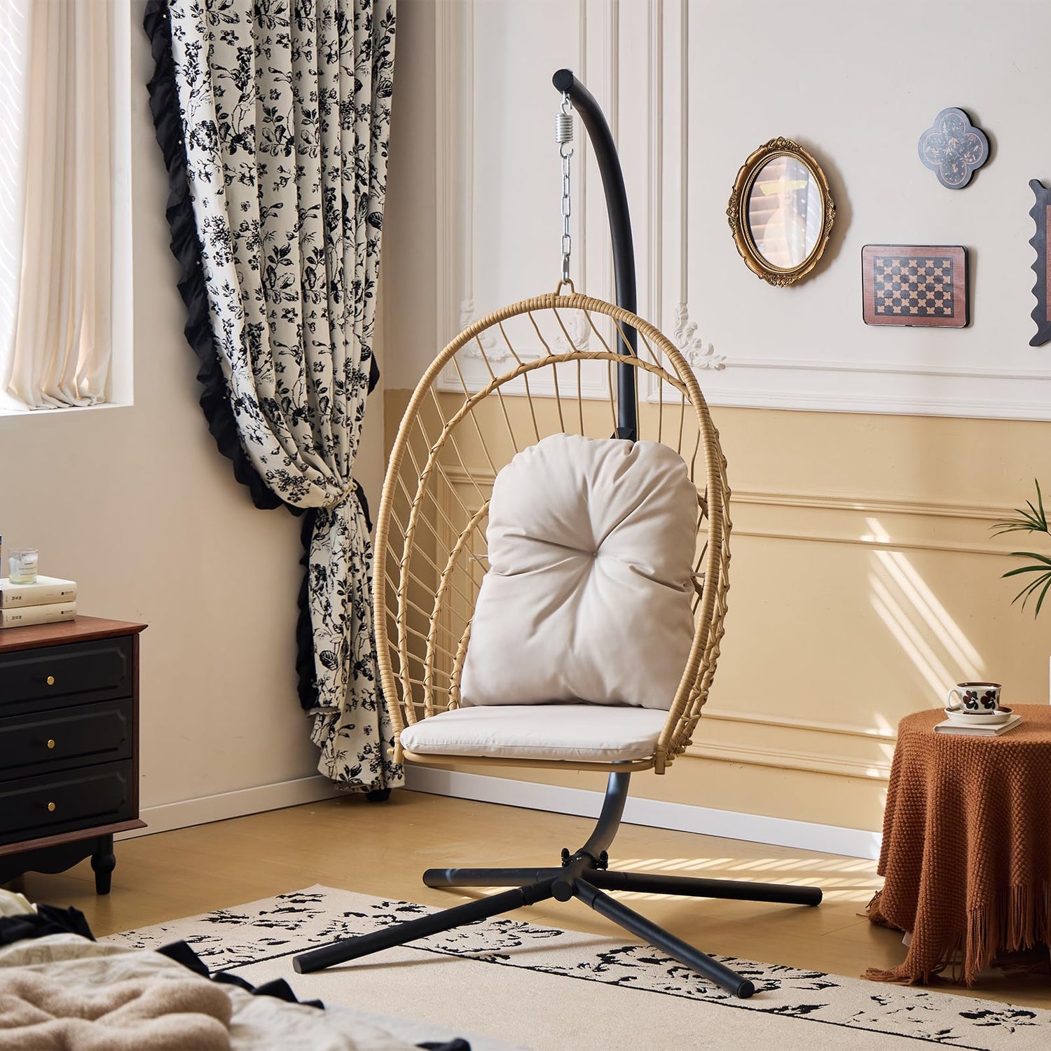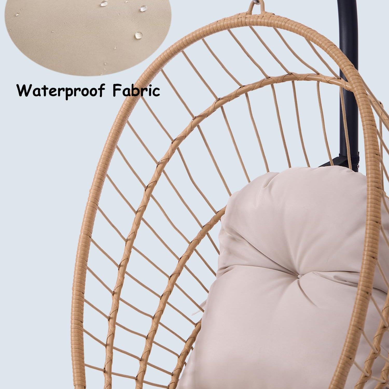 Topfuca Indoor/Outdoor Egg Hanging Chair with Stand - Patio Wicker Swing Hammock Chair. 350lbs Capacity, Cushioned. Ideal for Bedroom, Balcony, Porch, Garden. Versatile Swing Chair for All Spaces