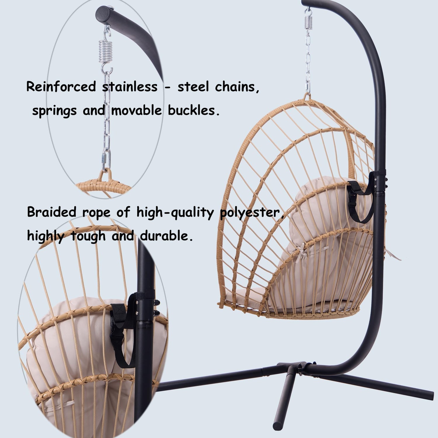 • Sturdy & Durable Construction: Our essential egg hanging chair, featuring a galvanized steel frame and heavy - duty stand for unrivaled sturdiness, is wrapped in waterproof wicker to resist rust and exude charm. With a 350 - lb capacity ensuring rock - solid stability on various surfaces, its powder - coated frame and nylon - rope - strengthened seat enhance weather resistance.