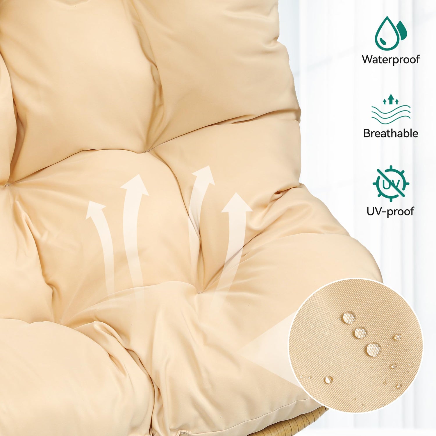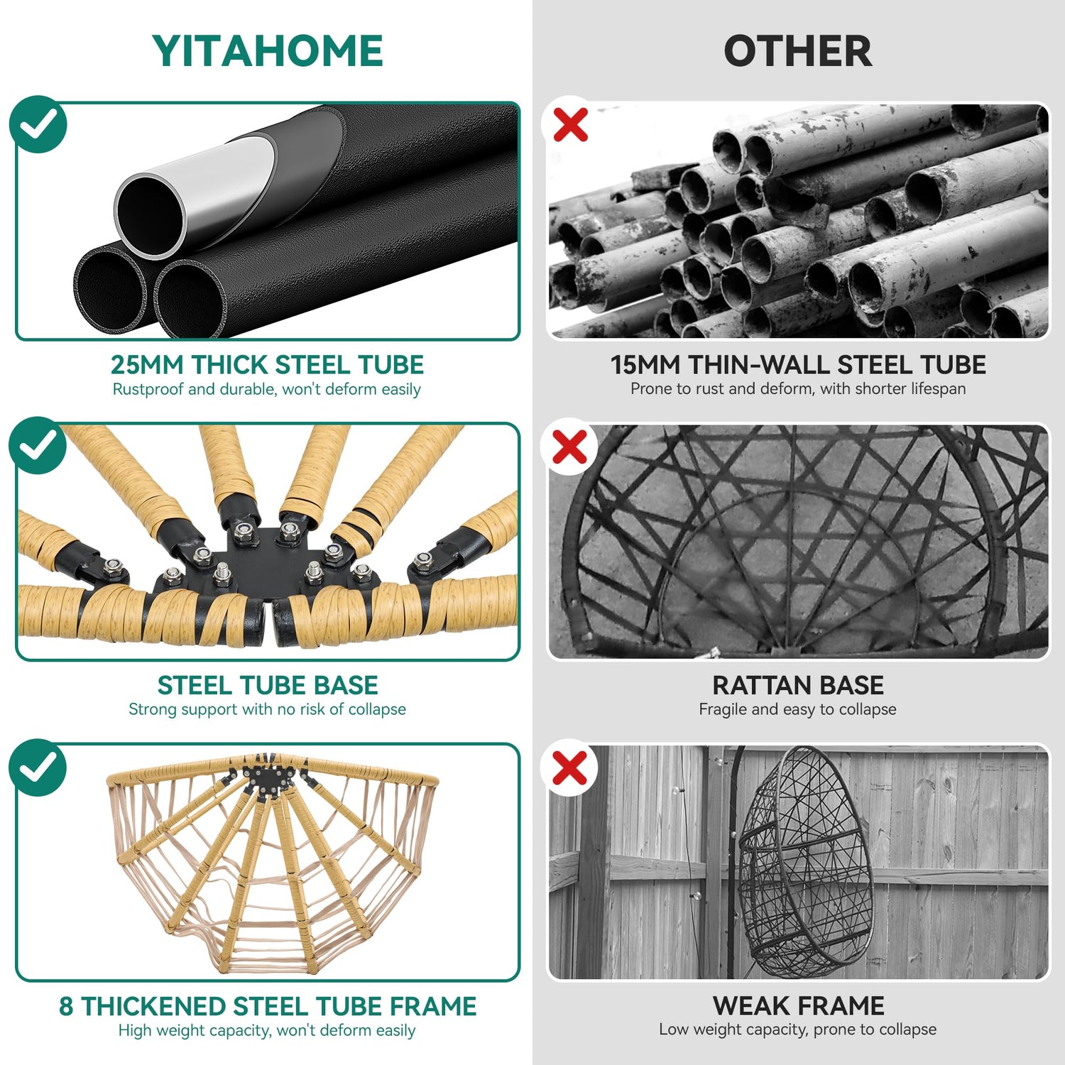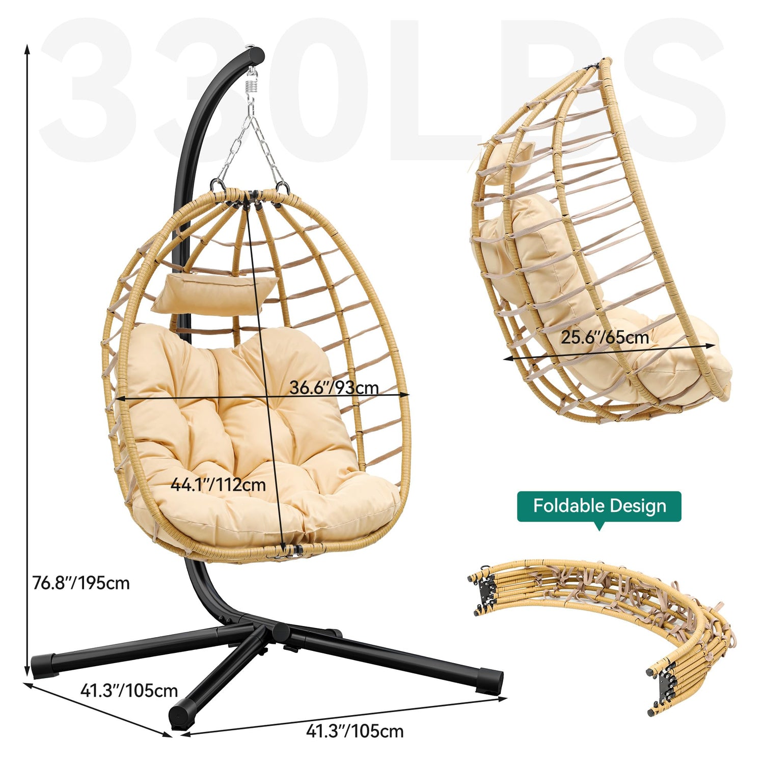 YITAHOME Egg Chair Swing Hanging Outdoor Wicker Hammock Chairs Indoor with Steel Stand UV Resistant Cushion 330lbs for Patio, Bedroom, Garden and Balcony - Beige