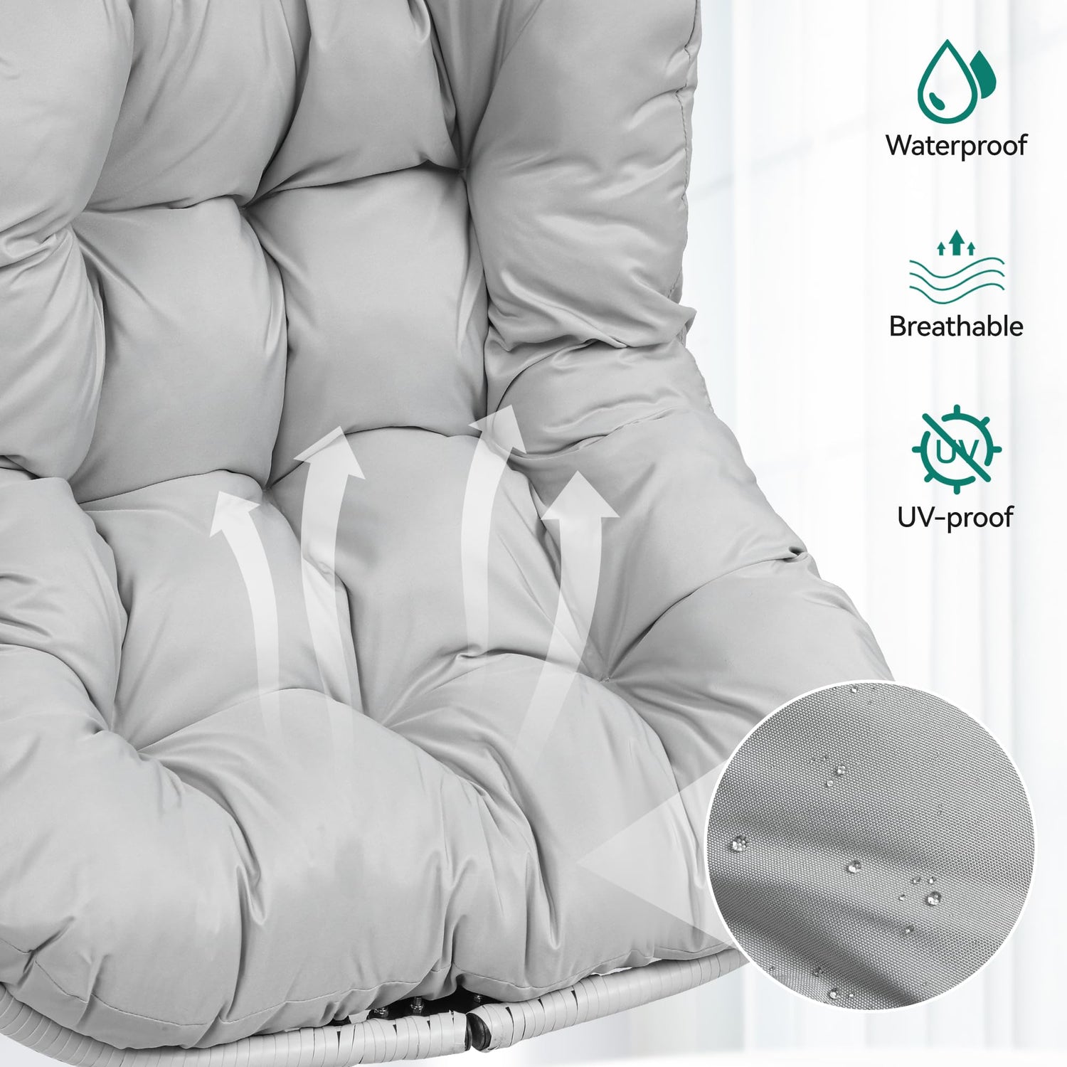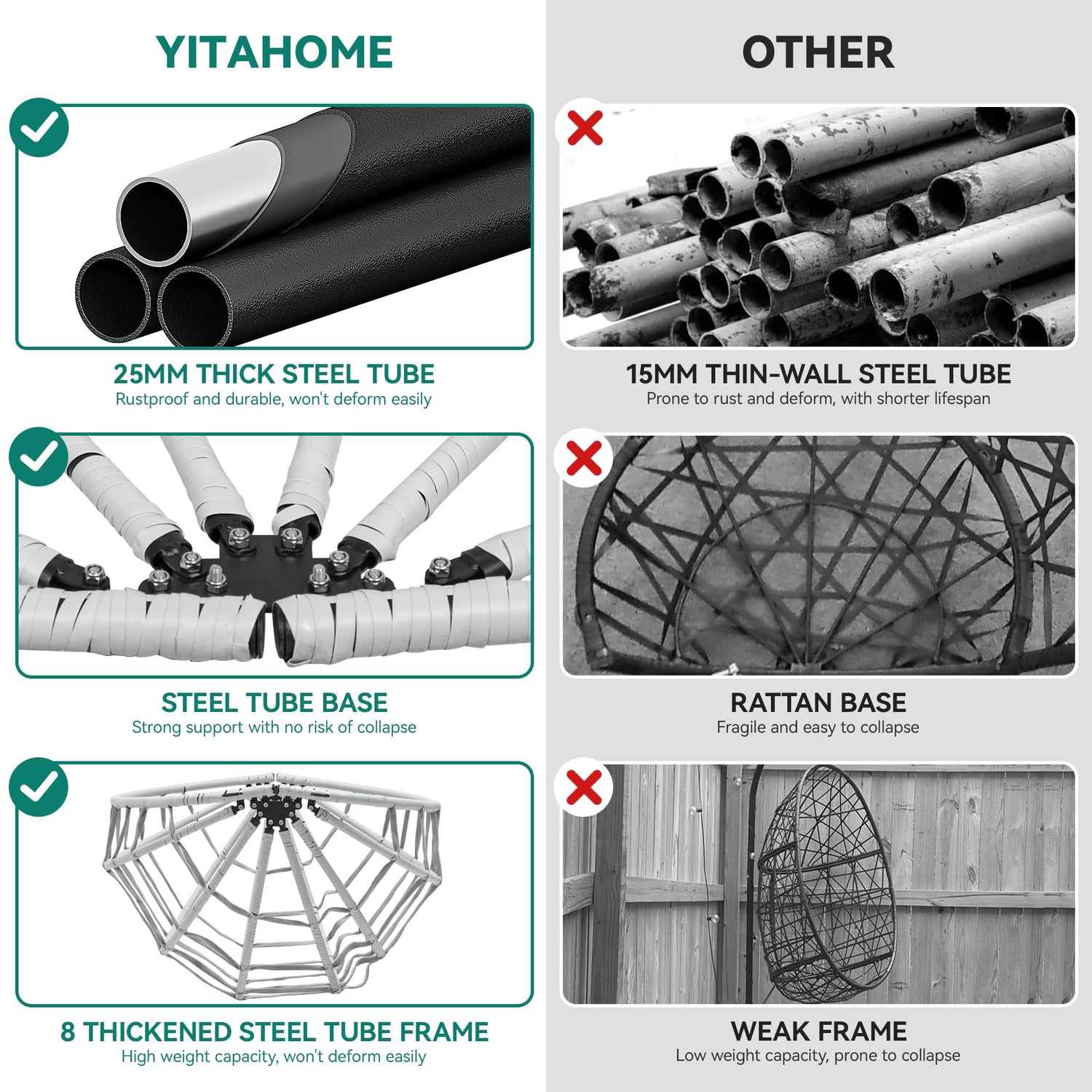 YITAHOME Egg Chair Swing Hanging Outdoor Wicker Hammock Chairs Indoor with Steel Stand UV Resistant Cushion 330lbs for Patio, Bedroom, Garden and Balcony - Gray