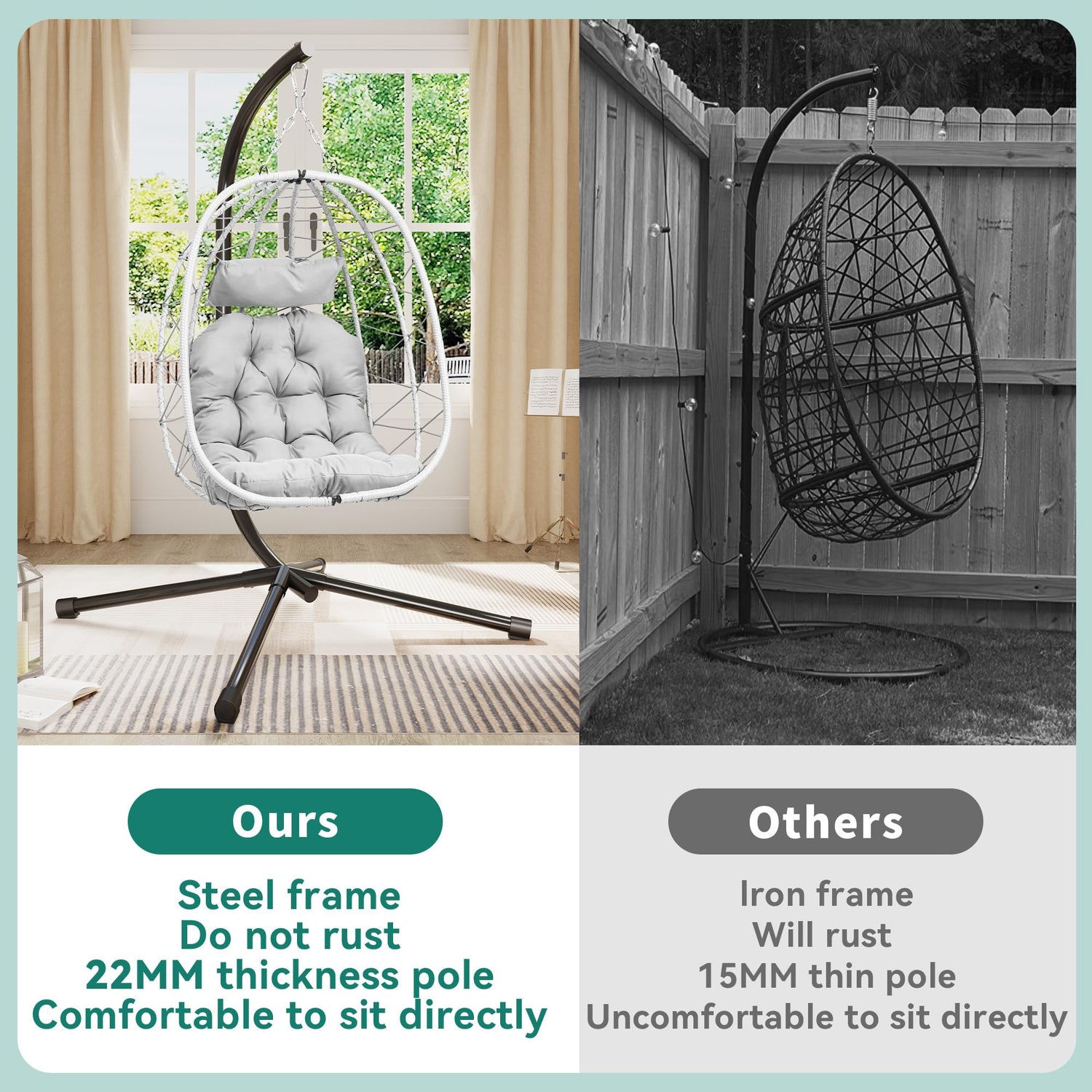 - EASY INSTALLATION&STORAGE: The hanging egg chair with stand adopts the method of folding storage. You can open it easily without the difficulty of installation. When storing, you can also easily close the chair without occupying space