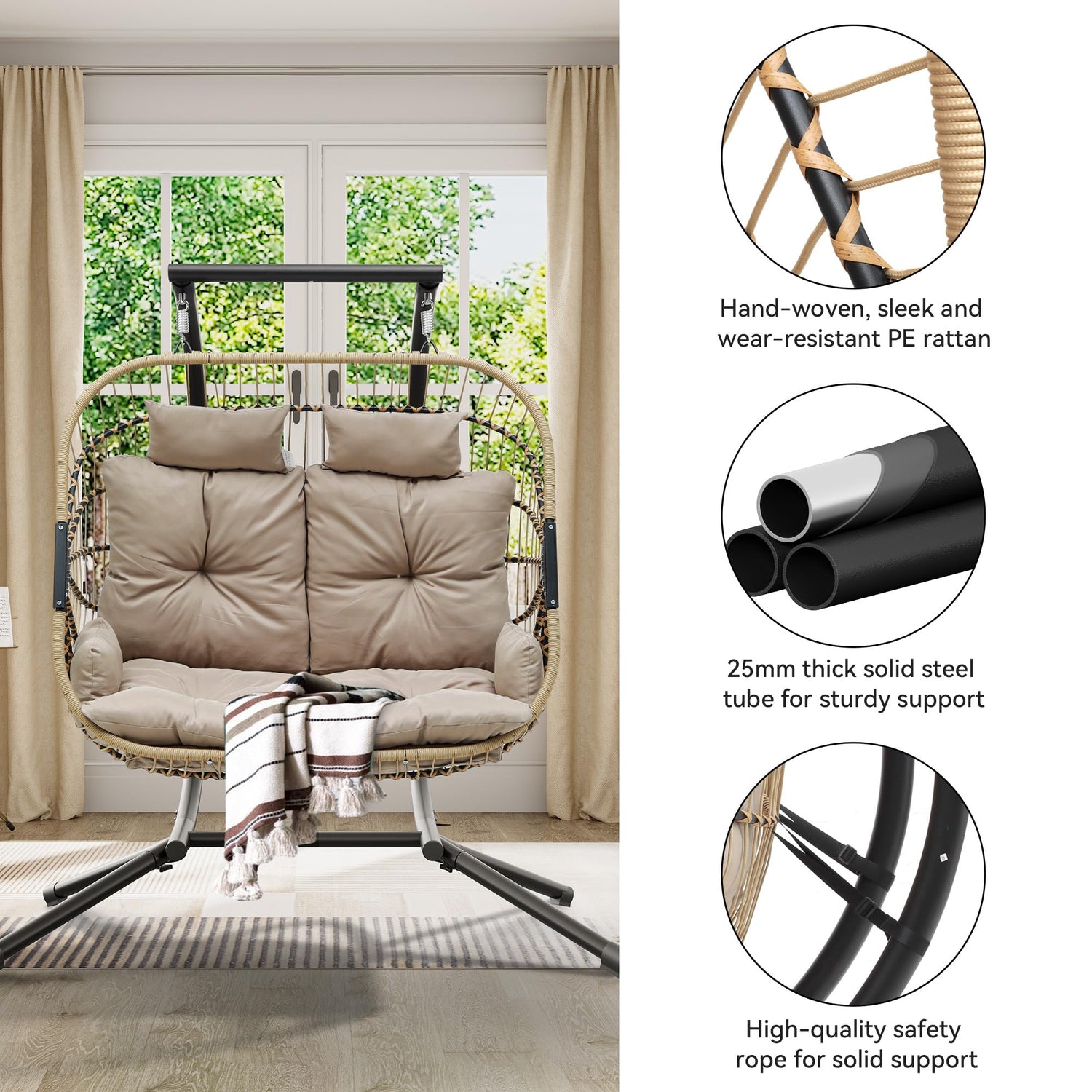 • Intimate Seating Arrangement: Double egg chairs are designed for two people, offering a cozy and intimate seating arrangement. This makes them perfect for couples or close friends who want to enjoy each other's company in an outdoor setting. Patio double egg swing chairs encourage conversation and interaction between individuals, making them ideal for entertaining guests or spending quality time with loved ones.