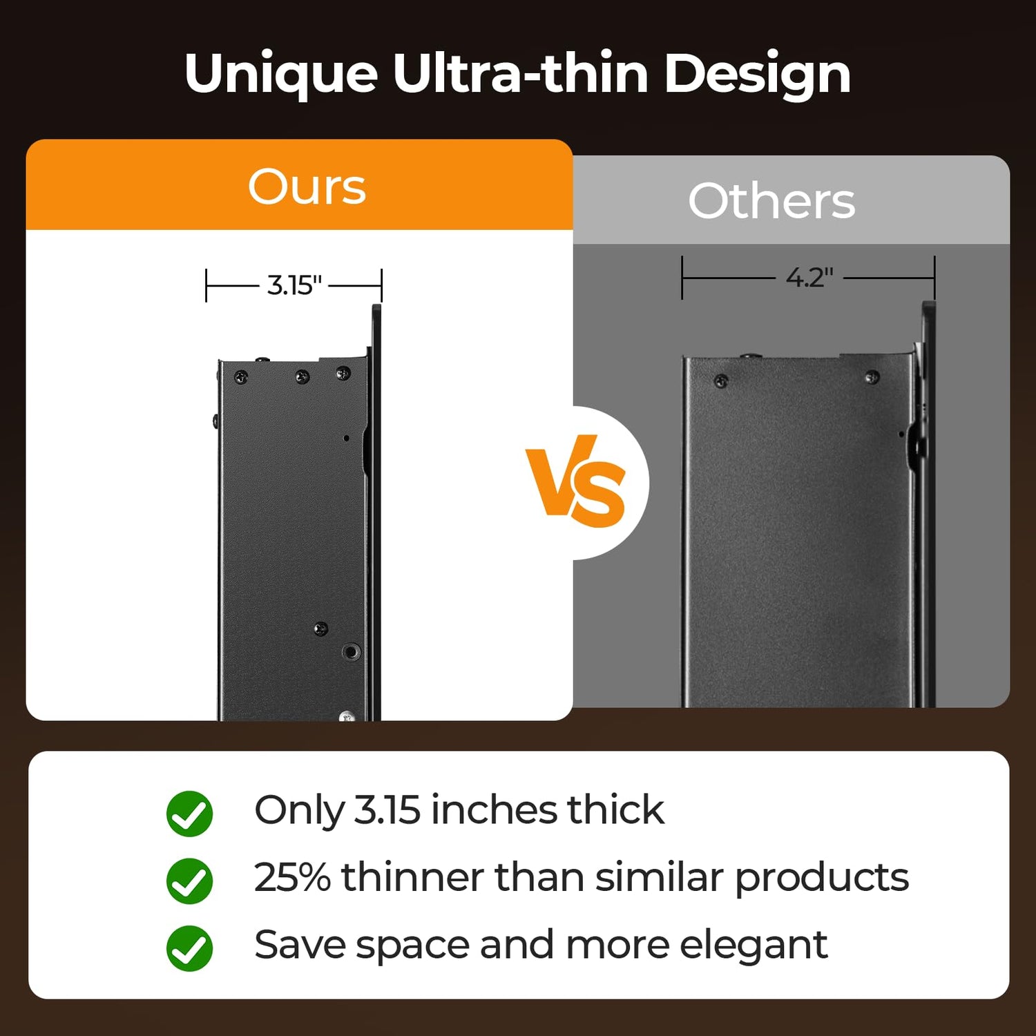 • Unique Ultra-thin Design: Designed with an ultra-thin profile, the thickness of this electric fireplace is only 3.15 inches, that's 25% thinner than similar products, which is way ahead of the market. Tempered glass and sturdy structure enhance the durability of the electric fireplace. When used wall-mounted, the thinner thickness will allow for a more aesthetically pleasing wall. When used recessed, it saves space and prevents damage caused by bumping or falling.