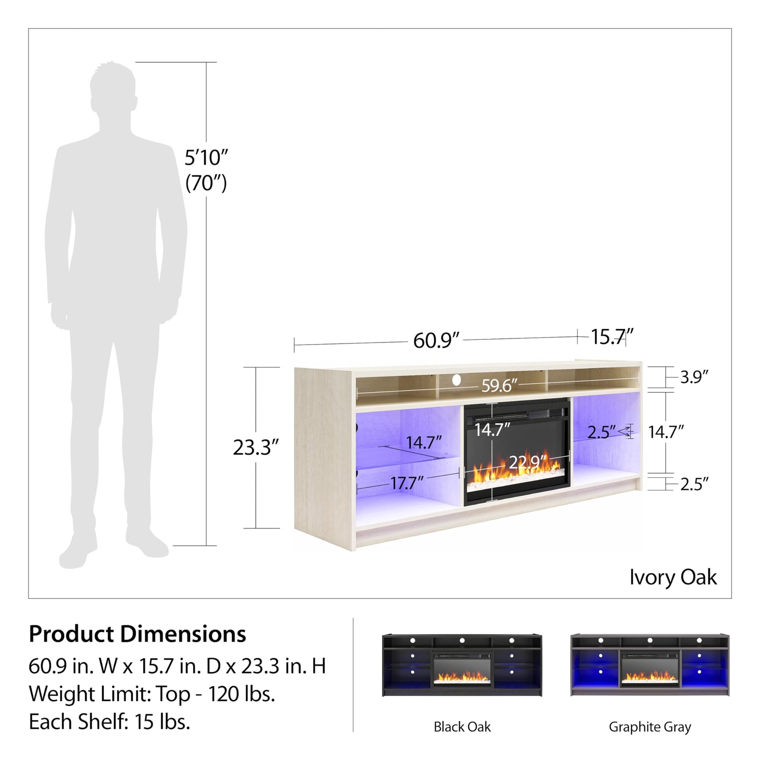 Ameriwood Home Luna Fireplace TV Stand for TVs up to 65", Graphite Grey