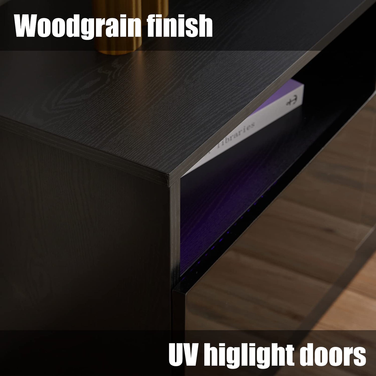 - Classic black woodgrain finish, UV highlight closed storage cabinet and glass fronts combine a traditional&modern contemporary design. Clear lines and a thick substantial appearance bring grace to living room