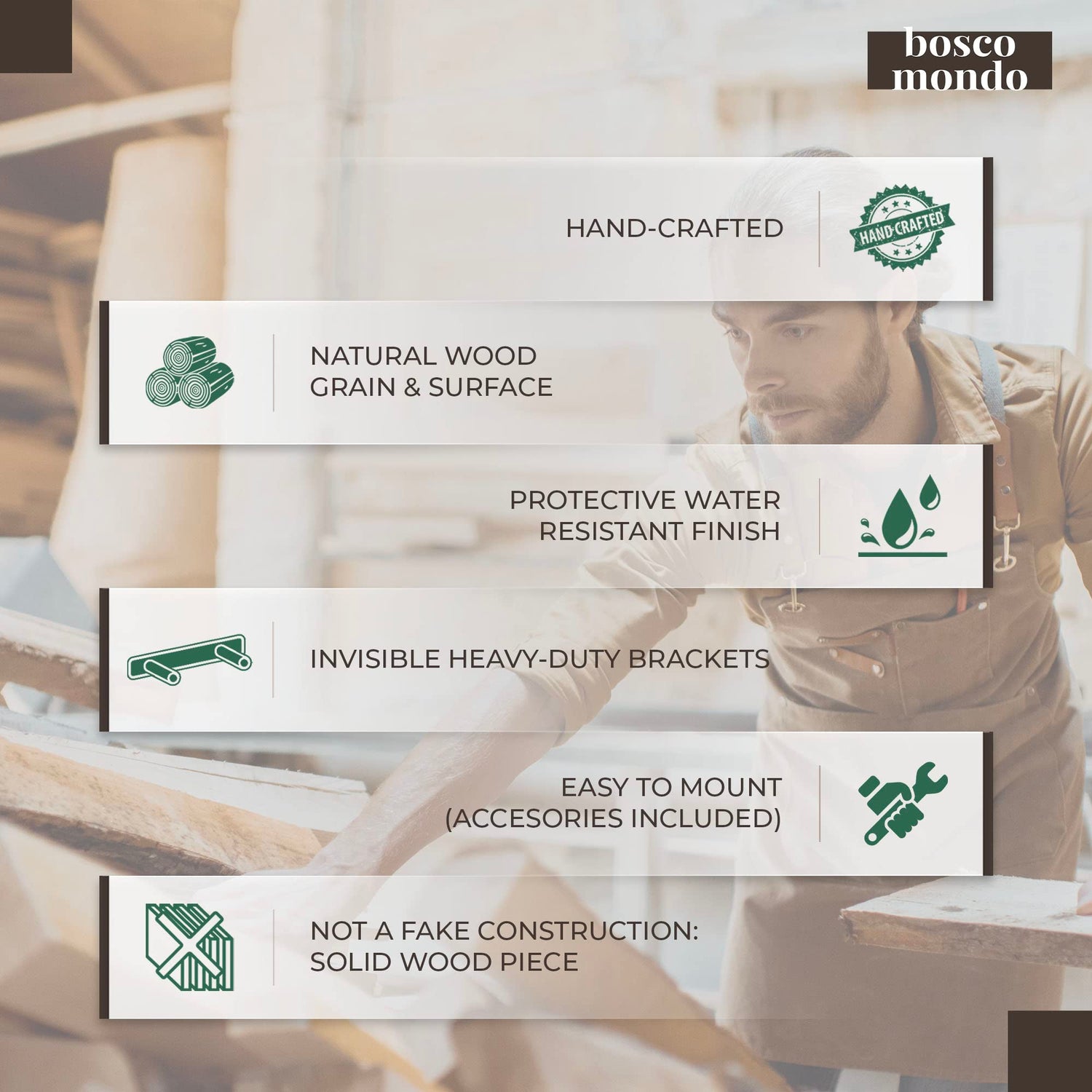- 📐 HAND-CRAFTED SOLID WOOD-NOT HOLLOW: All wooden pieces are hand-crafted and finished with water-resistant, eco-friendly and durable oil for superior protection. Our floating shelves are perfect for farmhouse wall decor and shelves for living room.