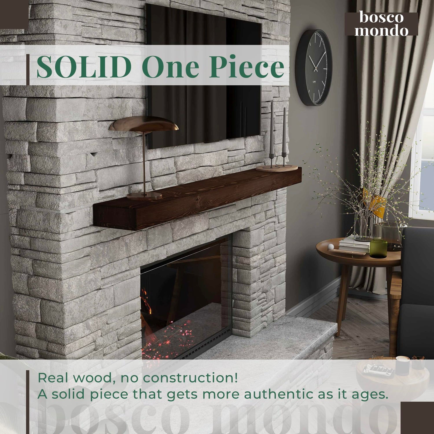 BoscoMondo 60 Inch Fireplace Mantel - Solid One Piece Rustic Wood - Wall Mounted Floating Farmhouse Shelf - with Invisible Heavy Duty Metal Bracket (60", Intense Brown)