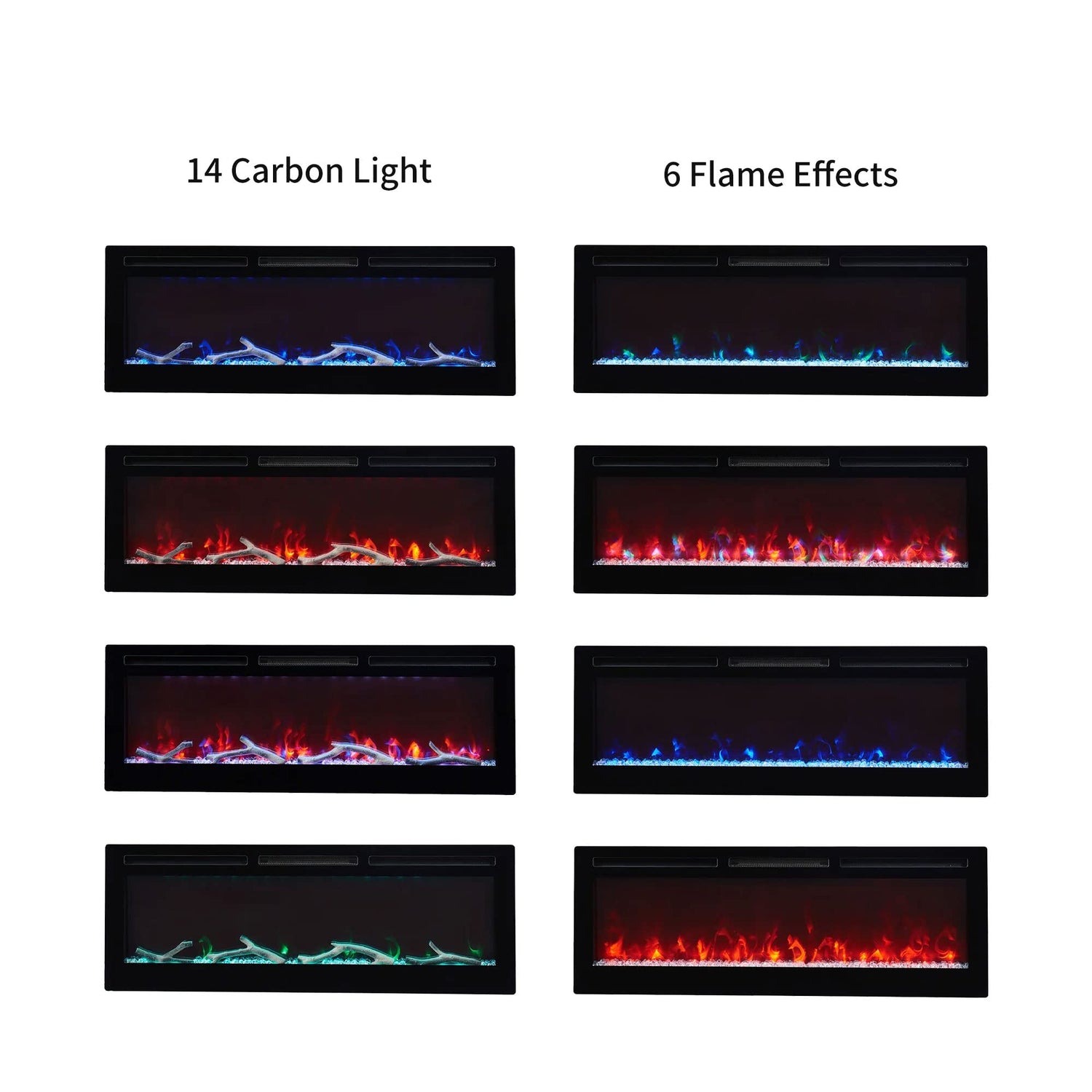 EDYO LIVING 50 inches Electric Fireplace Recessed and Wall Mounted Electric Fireplace Heater and Linear with Timer, Remote Control, Adjustable Flame Color