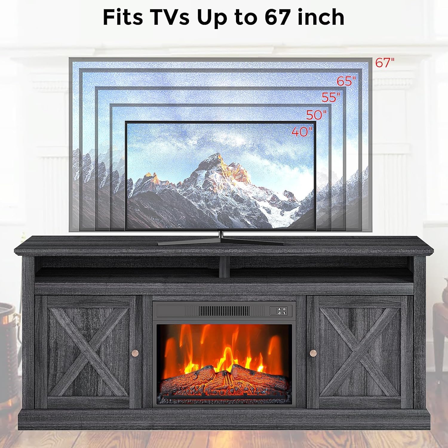 - All-Season Utility: This multi-functional stand allows for year-round use with or without the heat feature, offering cozy warmth in winter and the ambiance of flames in the summer. The sliding barn doors and spacious open shelf provide versatile storage options for your living room essentials.