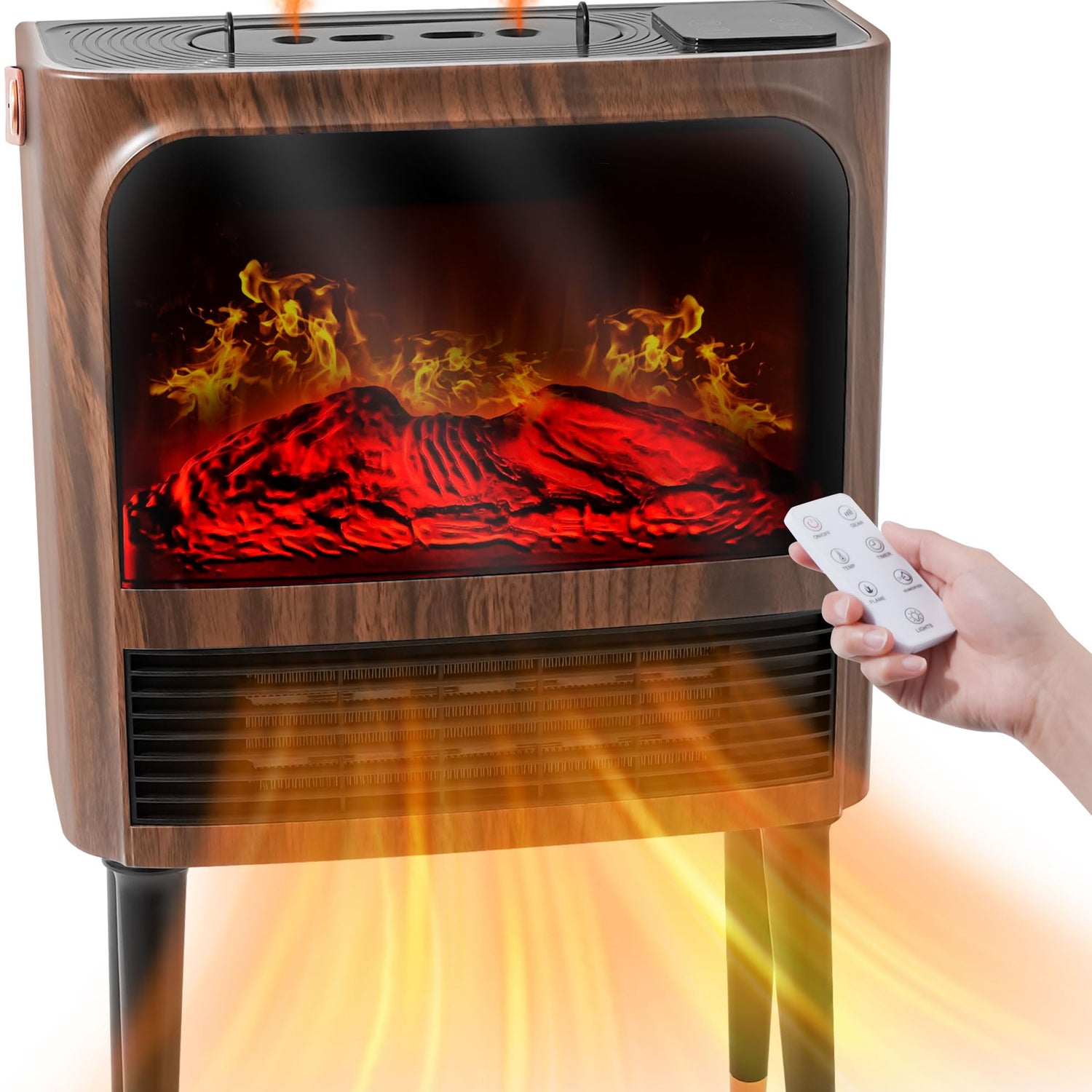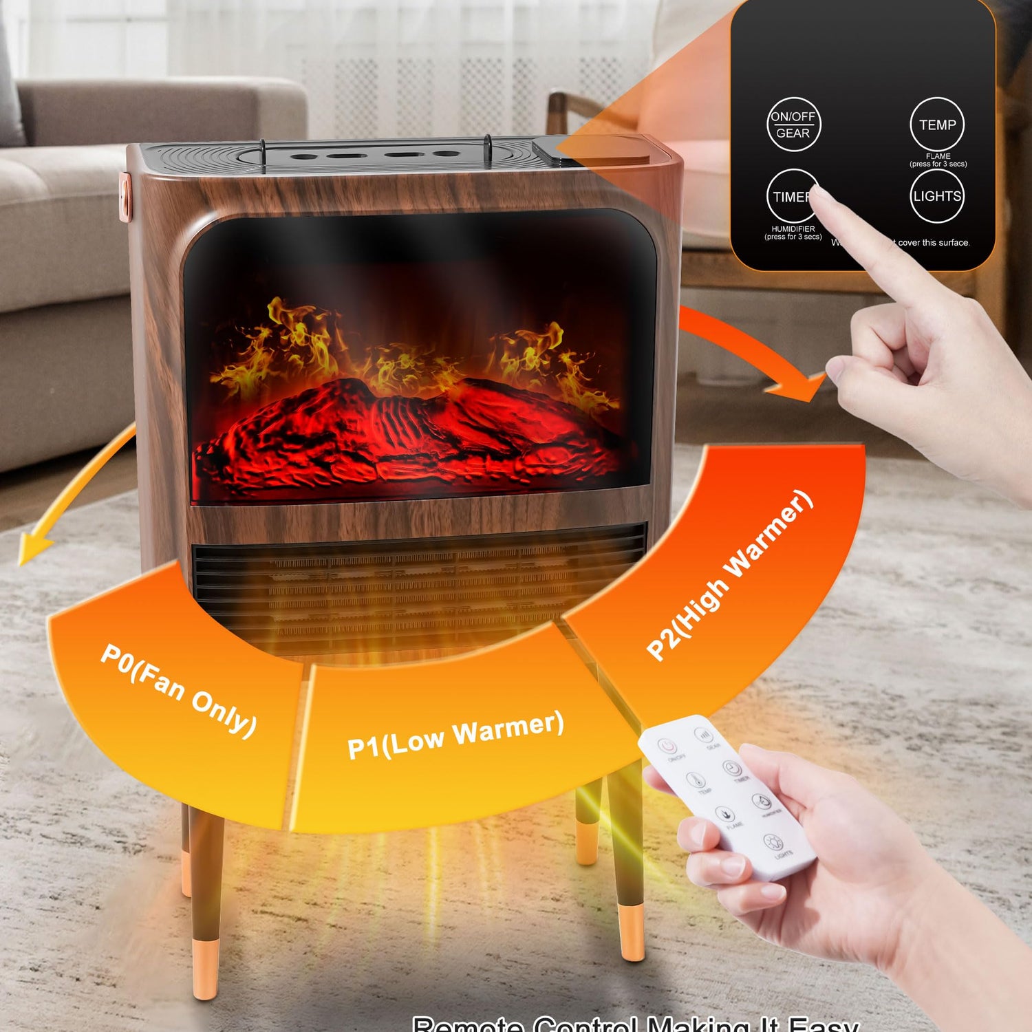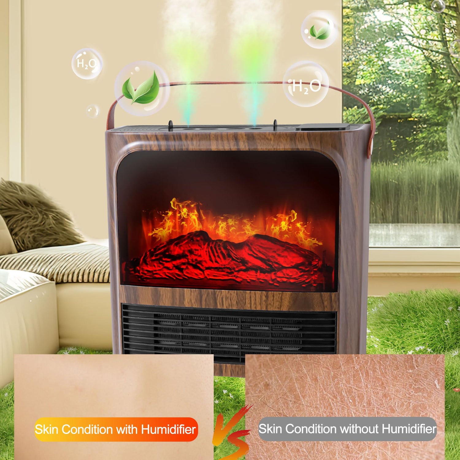 Electric Fireplace Heater with 3D Realistic Flame, Humidifier, Thermostat, Safety Protection, Remote Control, Timer, Electric Space Heater, 1500W/750W Portable Fireplace Heater for Indoor Use
