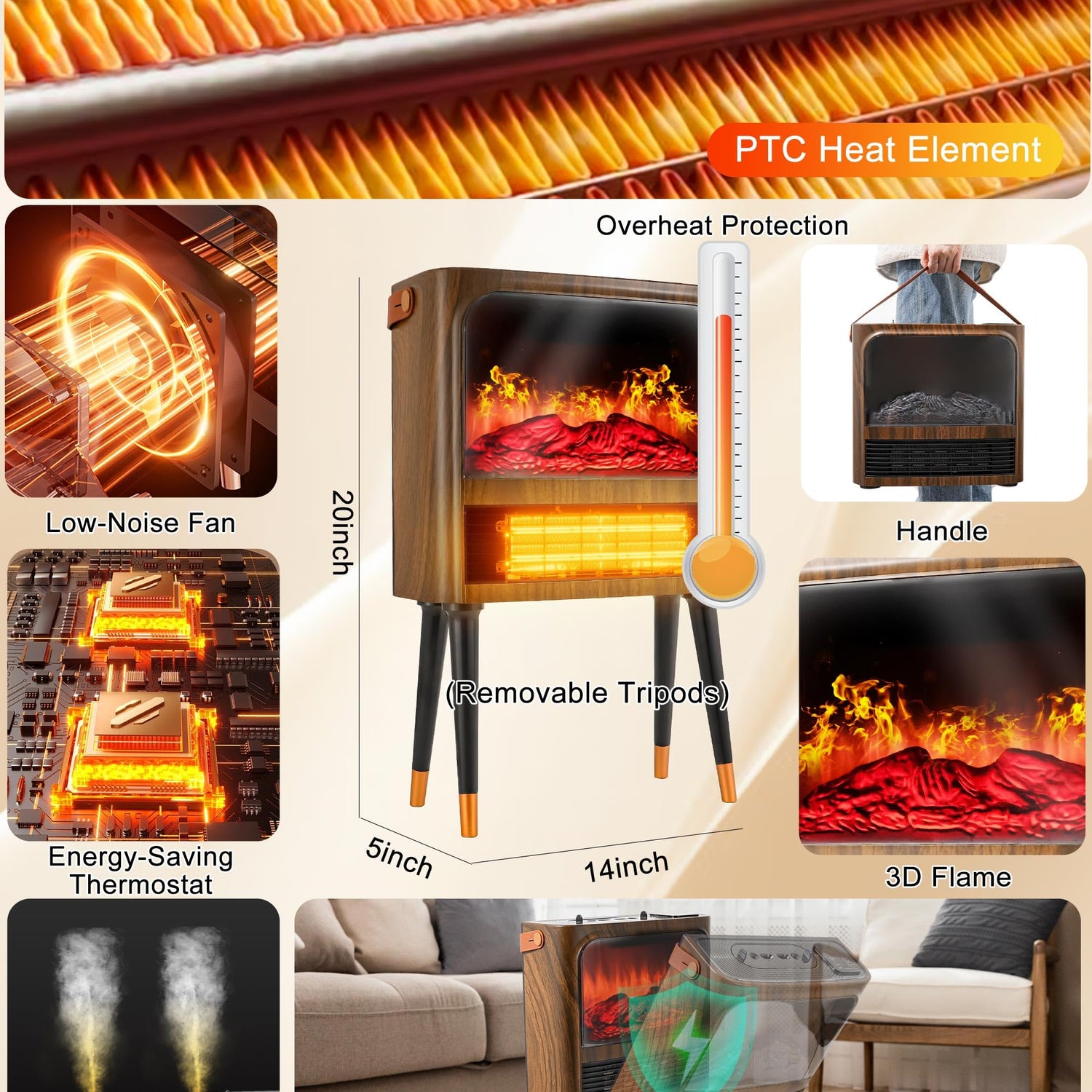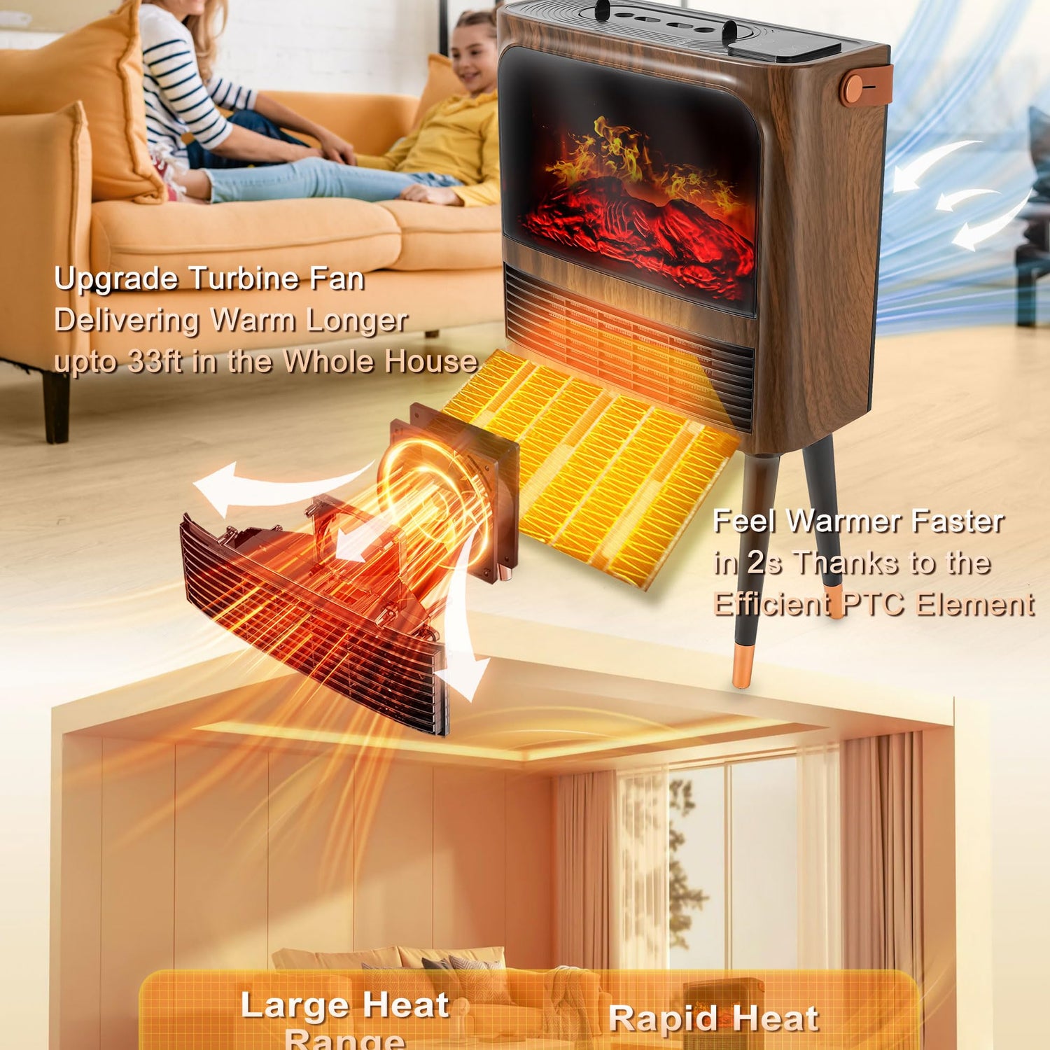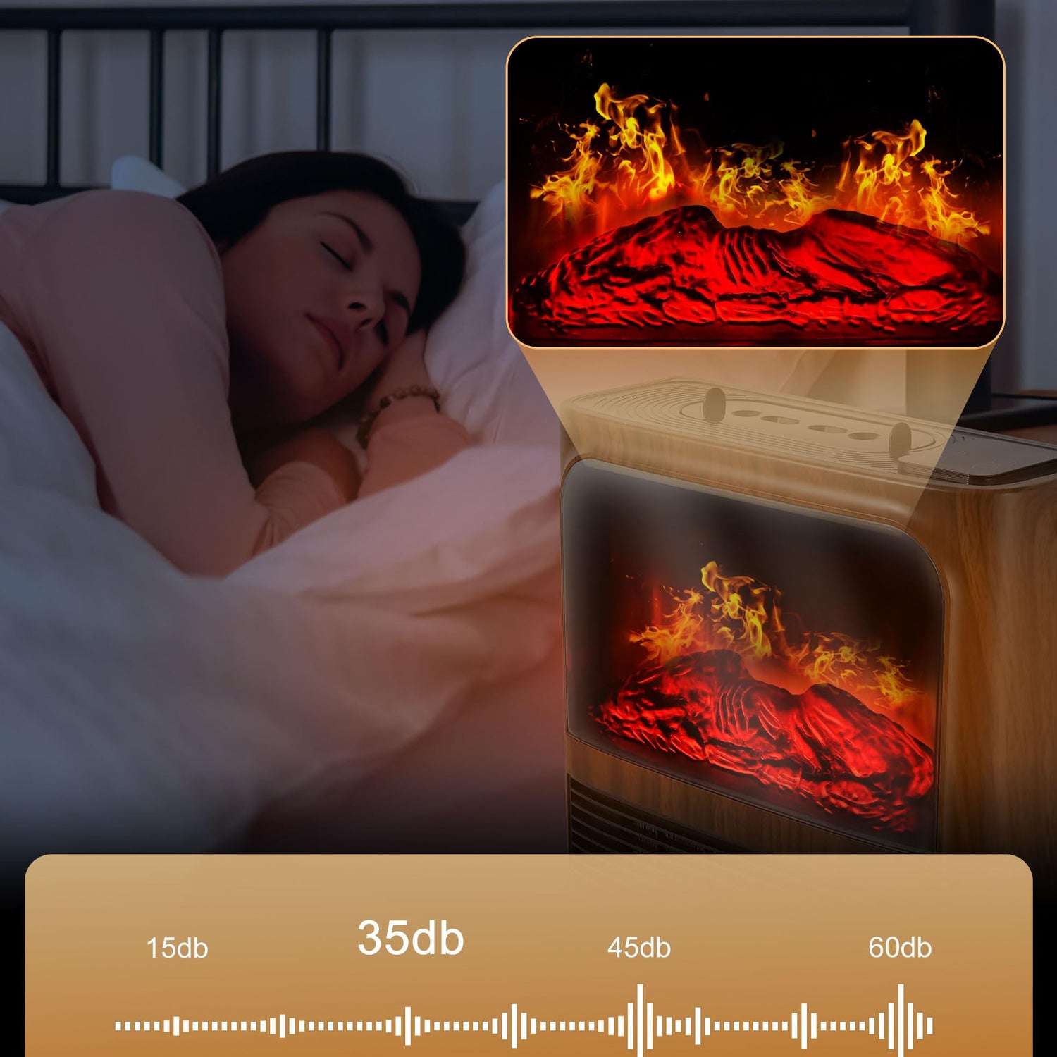• Our space heater with the low-noise fan motor structure that minimizes the noise down to 35 dB, which is quiet enough for most people to sleep, reading and work, quiet office space heater. And with the 3D Realistic Flame provides an immersive experience for you.