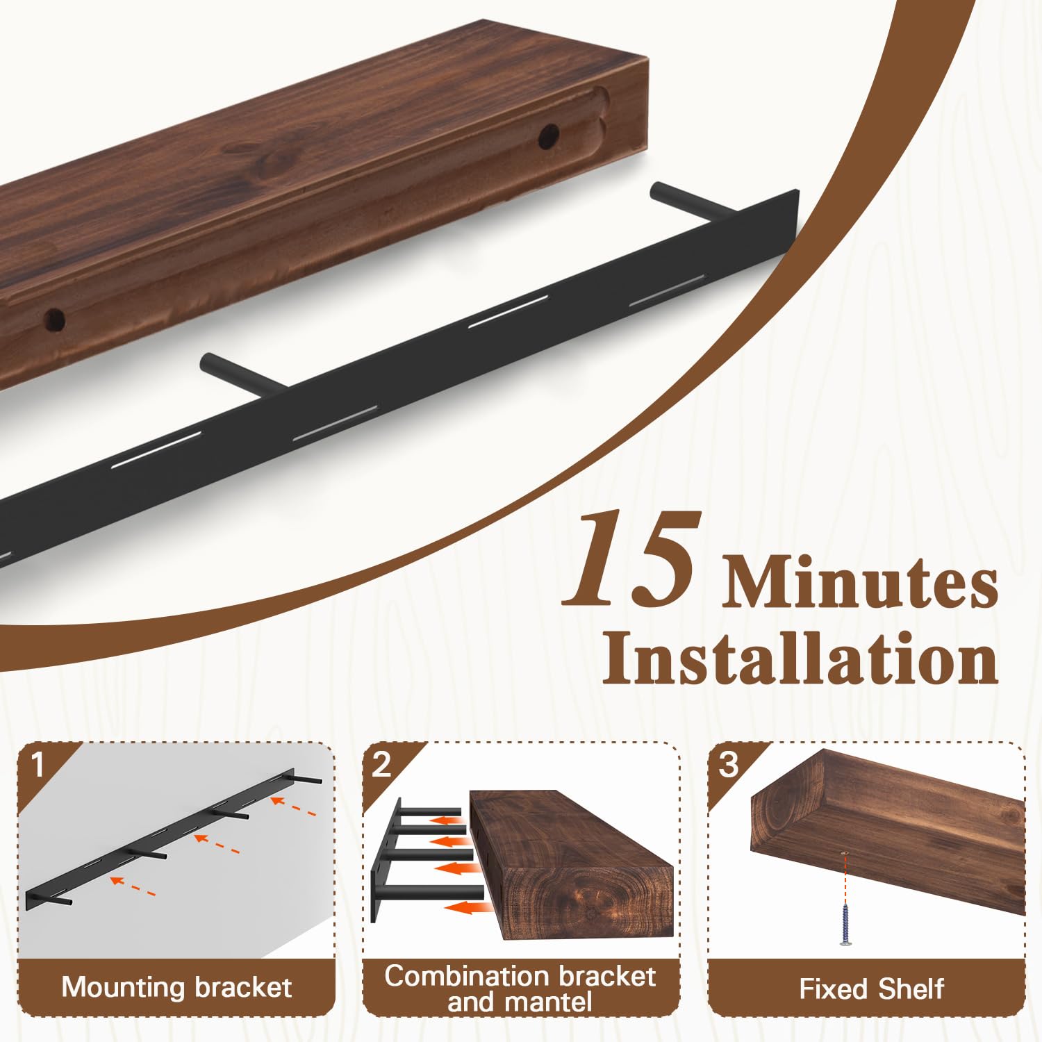 Fireplace Mantel, 60 Inch Handcrafted Wood Mantles with Invisible Heavy Duty Metal Bracket, Floating Mantel Shelf for Wall Decor, Brown