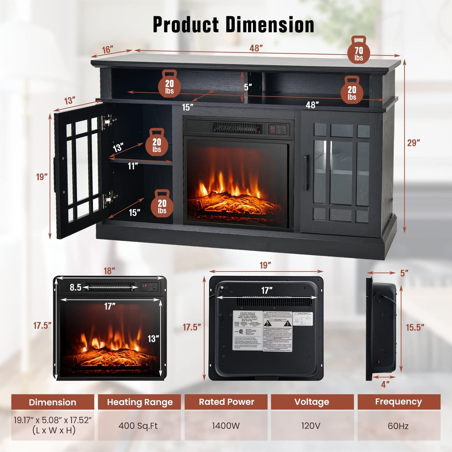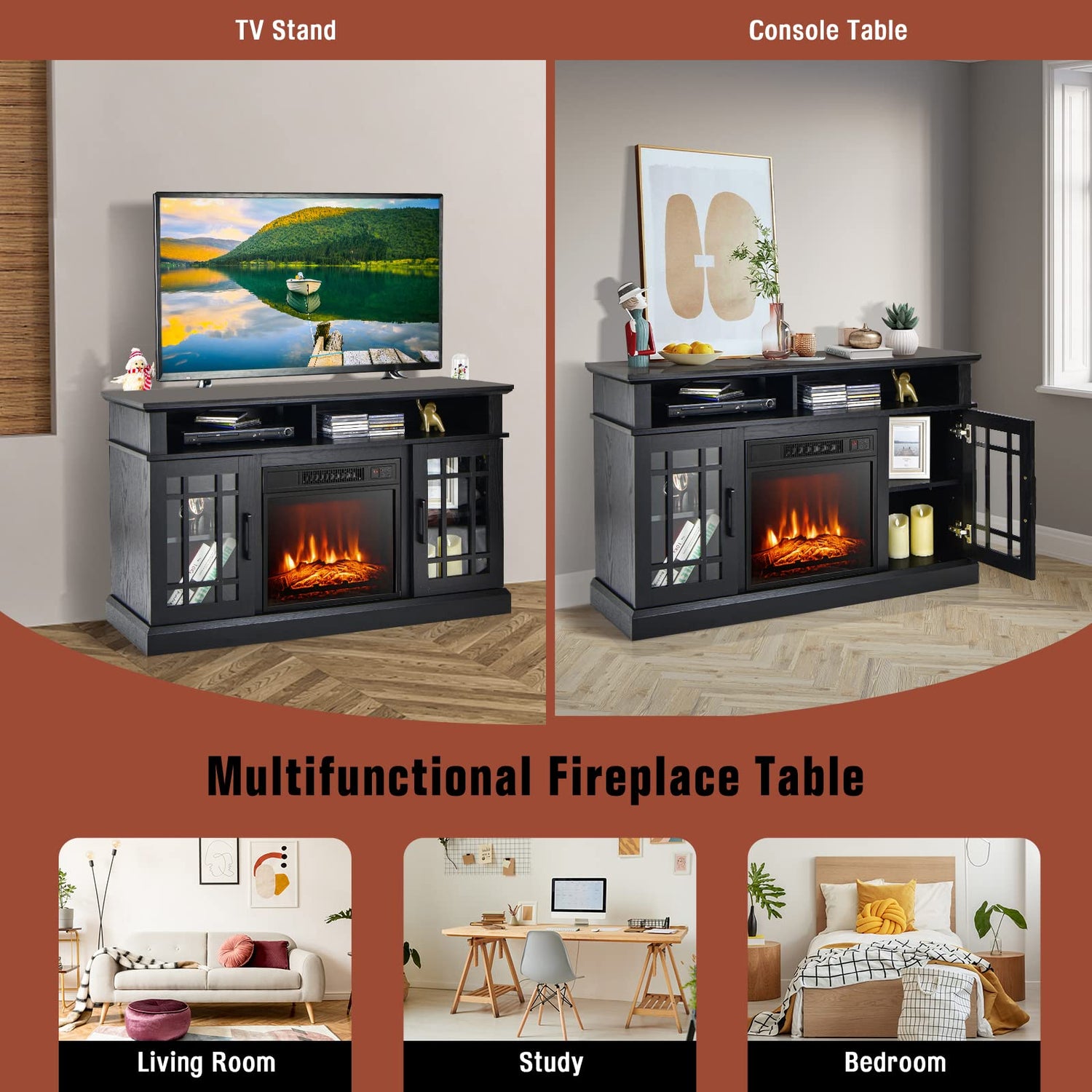 GOFLAME Fireplace TV Stand for TV up to 55 Inches, Freestanding Wood Entertainment Center with 18” Electric Fireplace, 48" TV Console Table with 2 Open Storage Compartments and 2-Door Cabinet, Black
