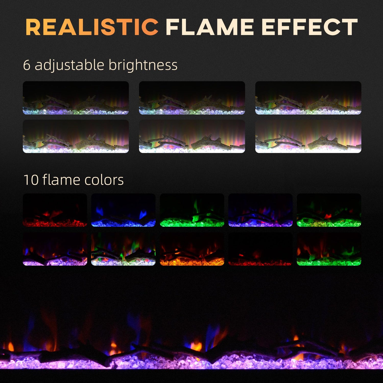 HOMCOM 40" Electric Fireplace Recessed and Wall Mounted with Remote Control, 1500W Fireplace Heater with 8H Timer, Adjustable Flame Color and Brightness, Log and Crystal