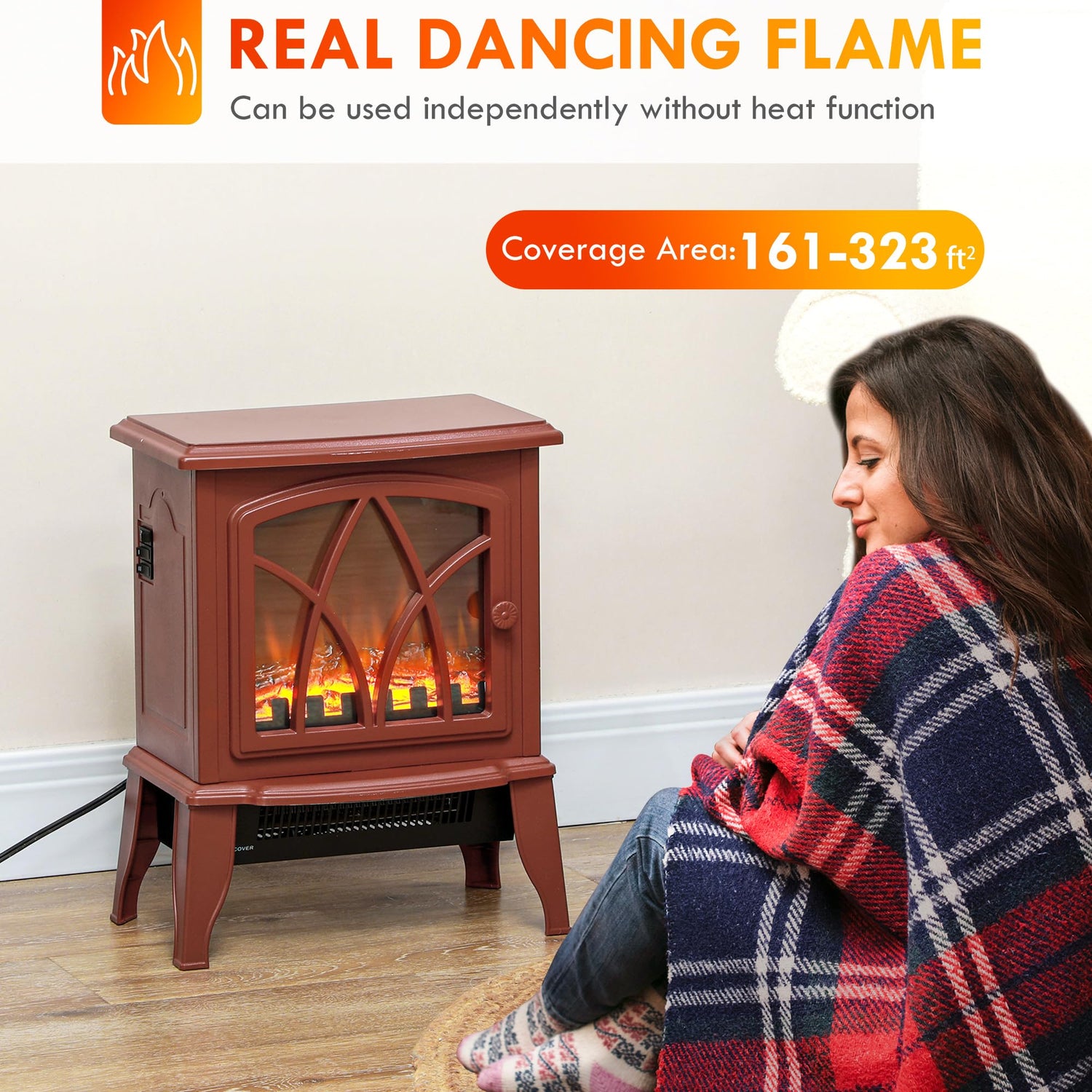 HOMCOM Electric Fireplace Stove, 18" Freestanding Fireplace Heater with Realistic Flame, Overheating Protection, Portable, 750W/1500W, Red