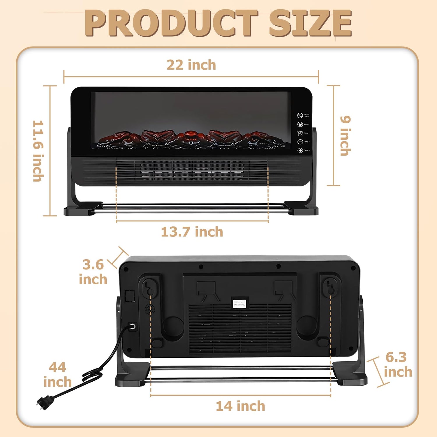 Honitra 22inch Small Electric Fireplace Heater, 3D Flame Fake Fireplace, Remote Control Wall Fireplace, Portable Fireplace Heaters for Indoor Use Living Room Bedroom Bathroom 1500w/2000w, 12h Timer