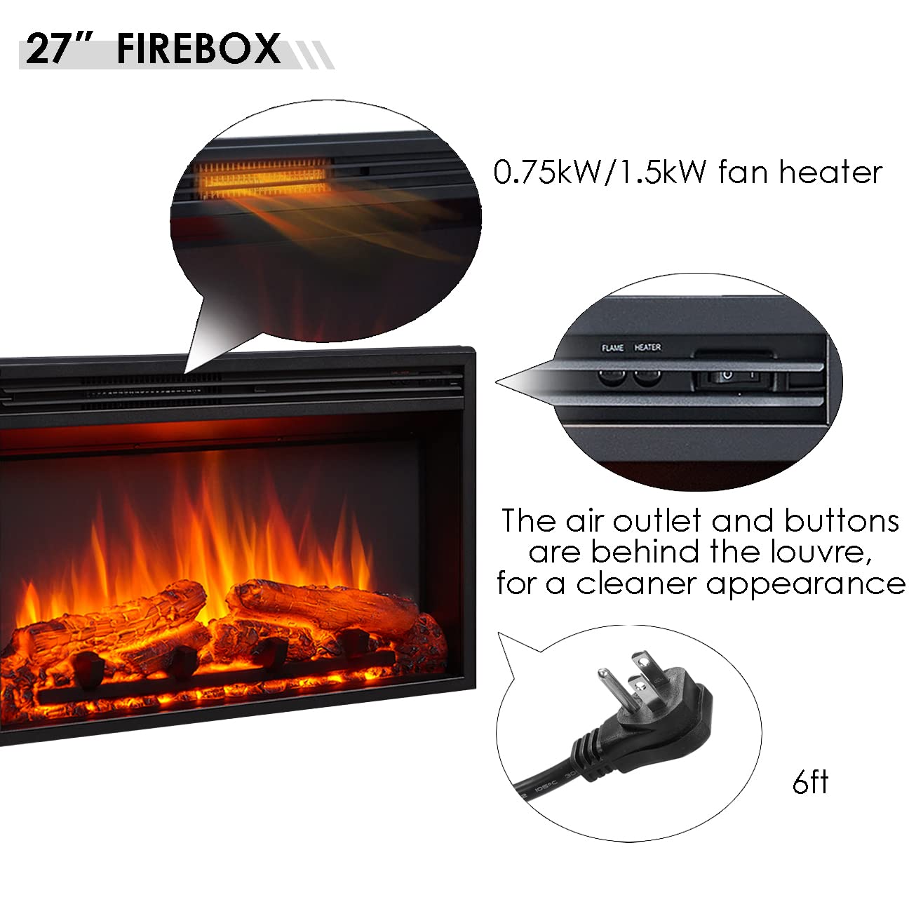 - Overall Dimensions: 39.4" (W) x 34.8" (H) x 9.8" (D). 27" Electric Fireplace Insert, 750W/1500W Heater, Weekly Timer, Mood Light, Remote Control