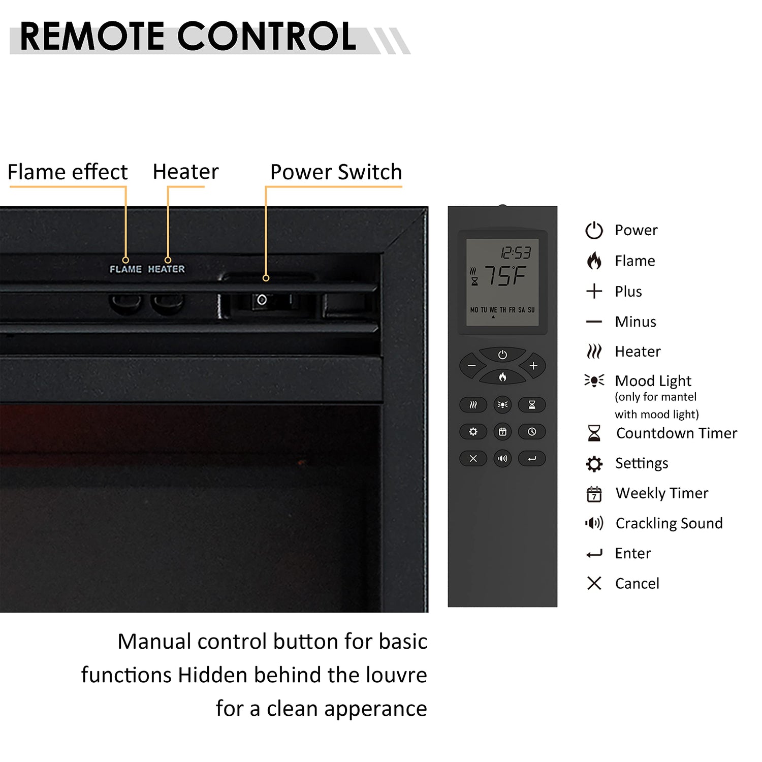 • LegendFlame Electric Fireplace with Mantel Package - 23" Electric Fireplace Insert with Mantel - Espresso Oak Finish, 750W/1500W Heater, Weekly Timer, Mood Light, Remote Control
