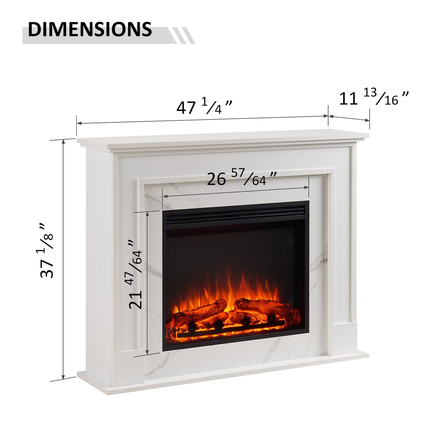 LegendFlame Fireplace Suite Cathrine, 47 Inch Mantel Surround, Cream White with Snow White Marble Finish, with 26 Inch Electric Fireplace Insert, 750W/1500W Heater, Weekly Timer, Remote Control
