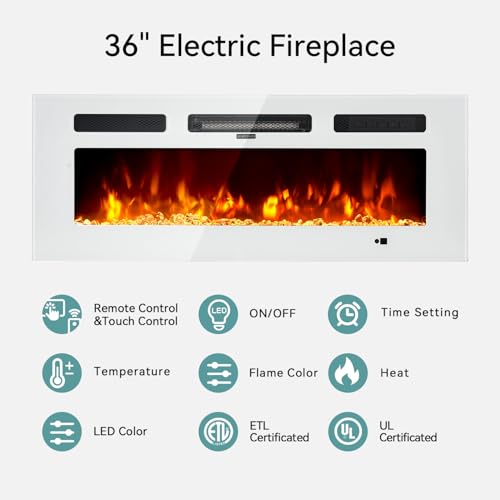 - Unique Floating Design: 36 inches mirrored electric fireplace insert with 70 inches glossing floating media console combination features a modern and unique contemporary design for your living room
