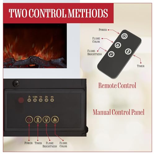 - REMOTE CONTROL - This fire place for the living room includes a convenient remote with battery that controls heat settings, color options, and the unit's power from anywhere in the house while you remain comfortably cozy and seated wherever you are.