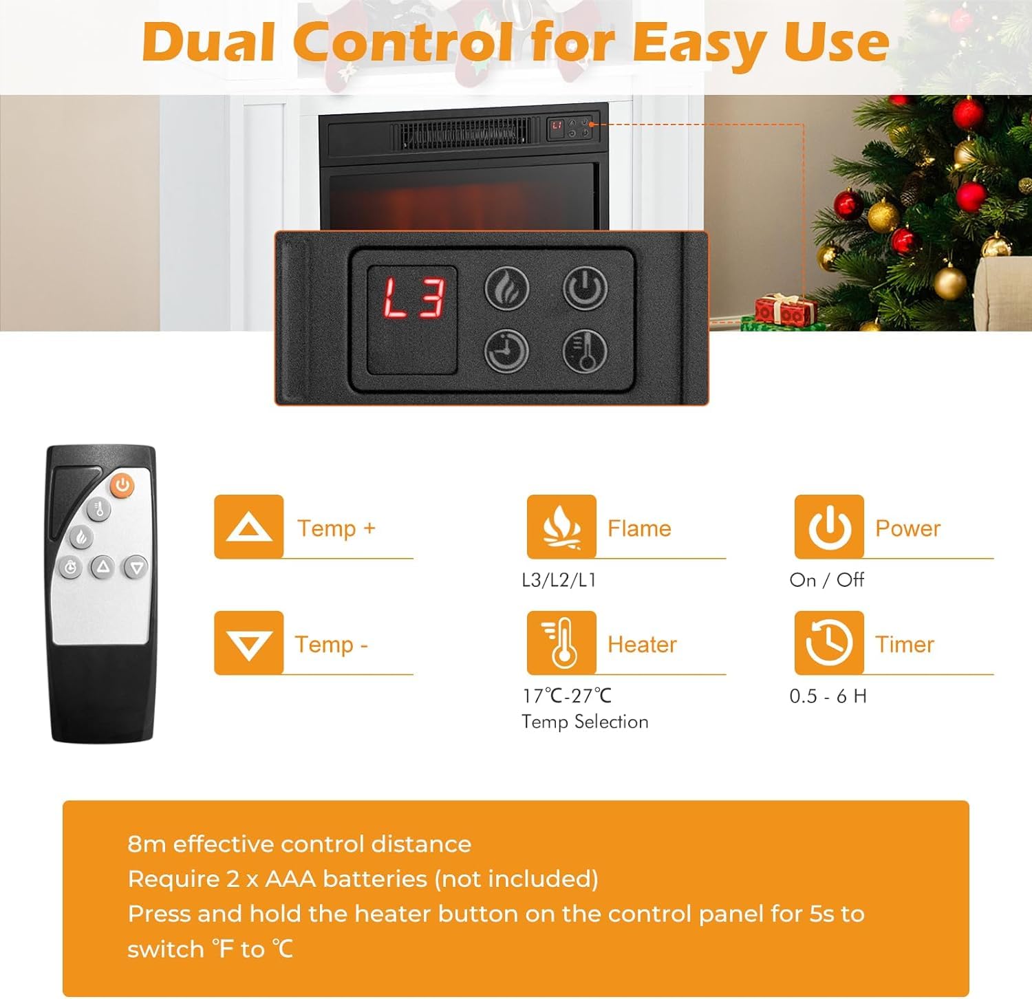 - 🔥【Safe Overheating Protection】OFFICEJOY electric fireplace has an overheat protection system that will automatically turn off the electricity if the temperature gets too high. In addition, the timing function of up to 6 hours and low noise can not only reduce energy consumption, but also provides a cozy atmosphere if your family are asleep.