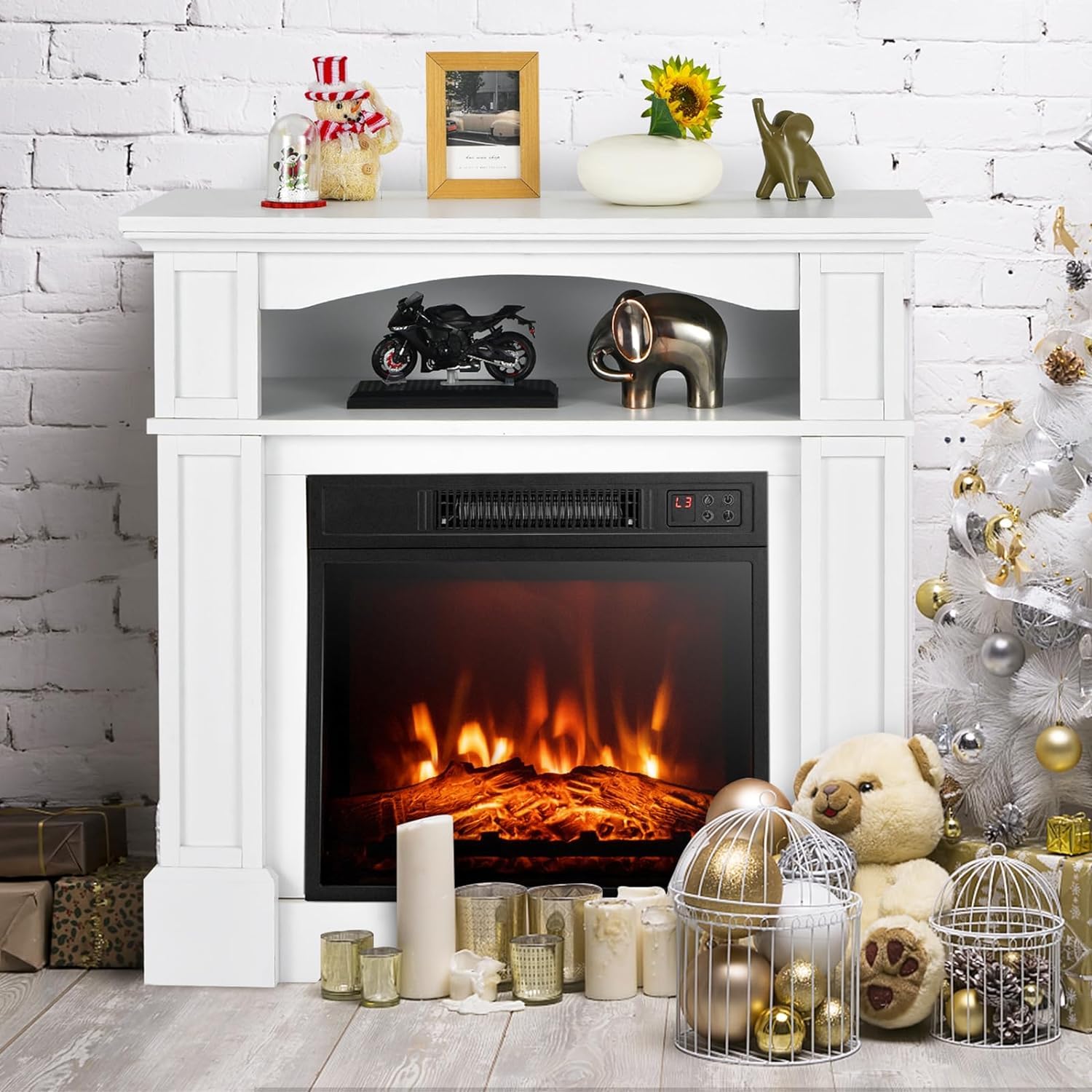 - 🔥 【Eco-friendly Electric Fireplace】 The fireplace with mantel possesses a premium heating device with 1400W heating, 5000 BTU heat output and 400 Sq.Ft heating area. The high-efficiency heating will quickly drive away your coldness in winter. The electric fireplace can reach a temperature from 60°F to 82°F.
