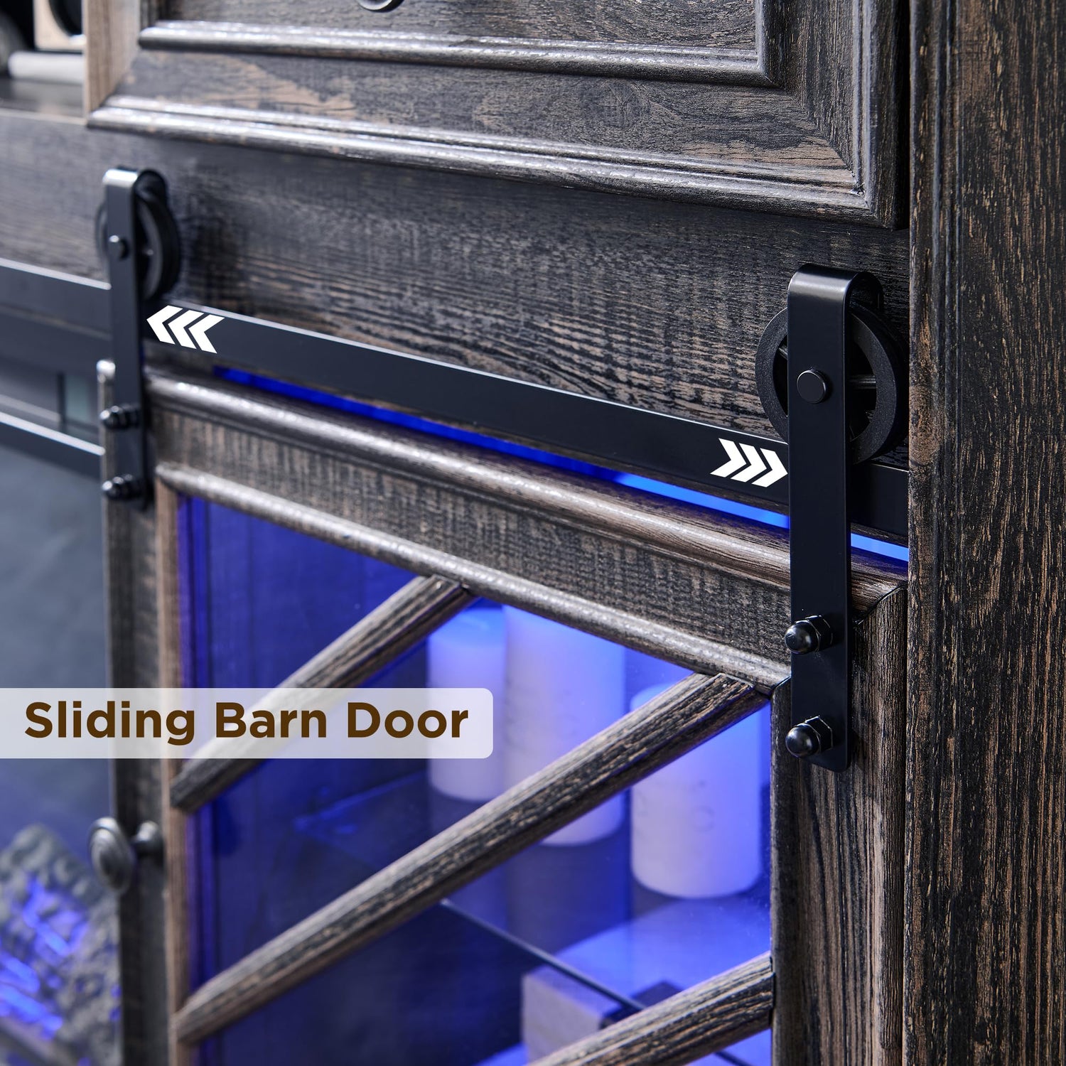 - Farmhouse Fireplace TV Stand: Measuring 75" W x 15.5" D x 32.7" H, this stylish and functional TV stand can accommodate TVs up to 85". The included LED fireplace can be used with or without heat and features 7 different color light options.. Featuring a striking replicated oak finish and robust plank design, it adds a touch of rustic charm to your home. With ample storage space, it enhances your room’s cozy and welcoming atmosphere.