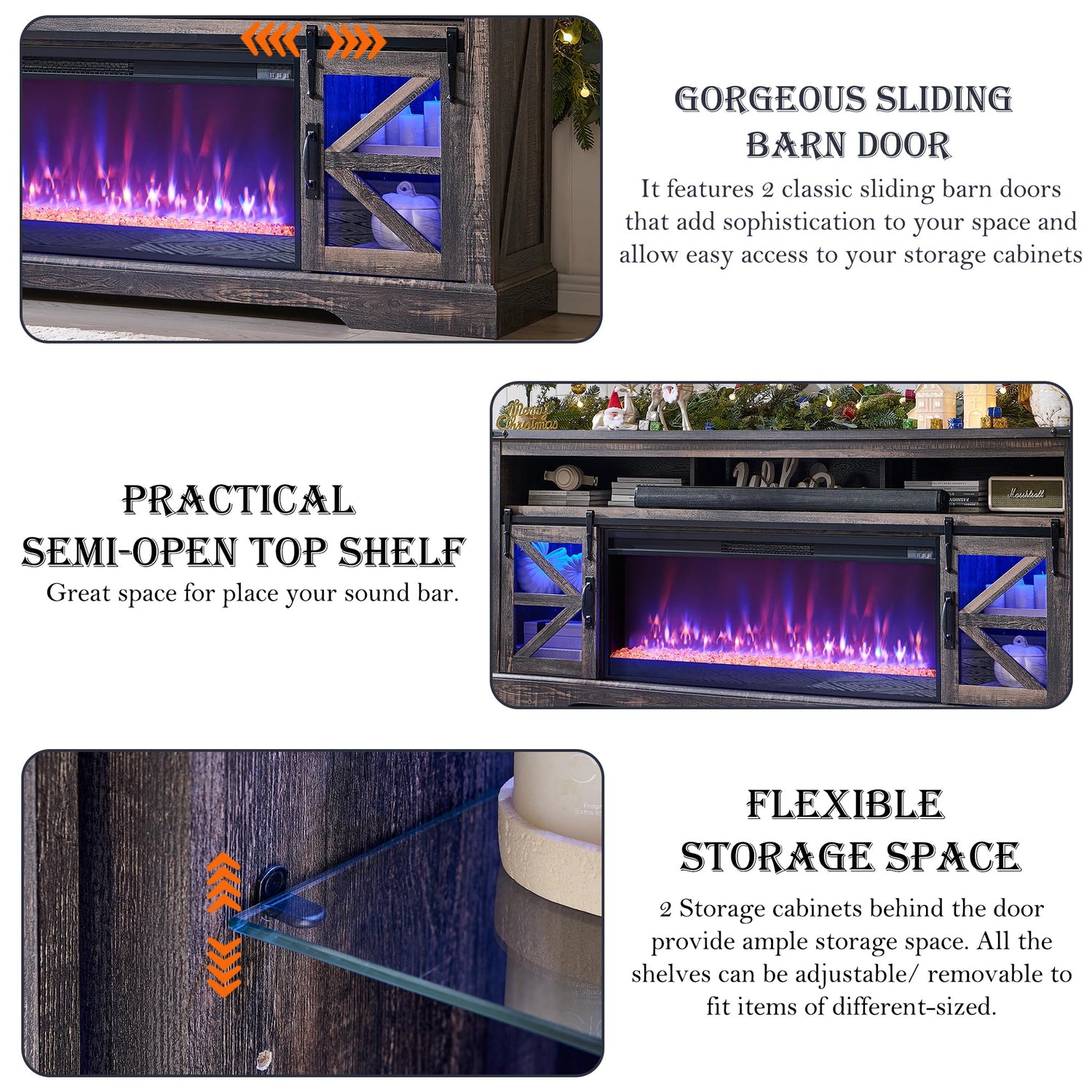 • Gorgeous and Glamorous Farmhouse Style Fireplace TV Stand: OKD Fireplace tv stand features an exquisite sliding barn door and retro metal decor. Its unique distressed finish is wonderfully eye-catching, and it has natural variations in grain, color, and texture, giving every piece a unique look, and easily creating a rustic, charming, cozy living room. Matches perfectly with other furniture in the OKD living room furniture series.