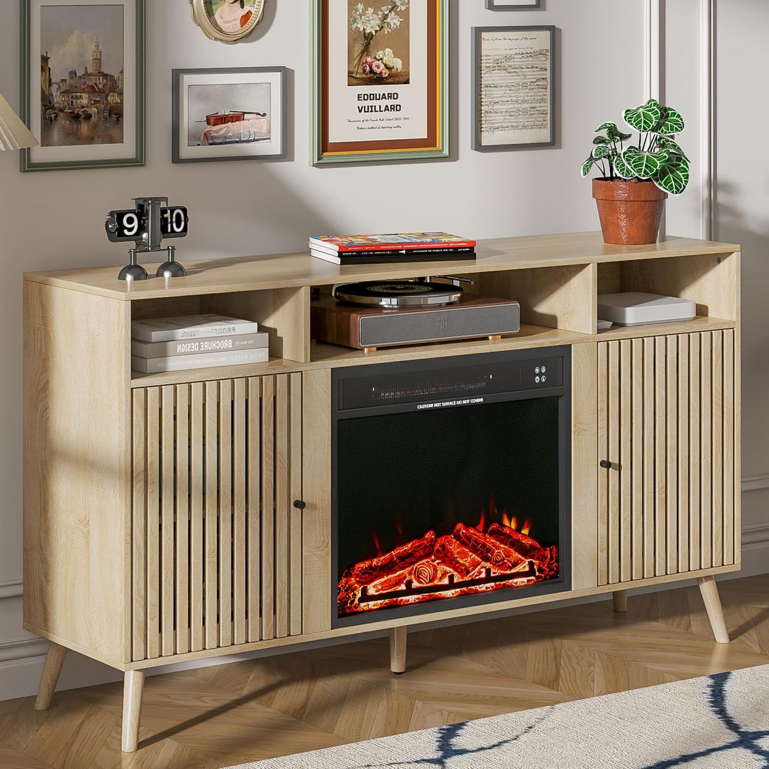 • 【Durable Construction】The TV with Fireplace is made of high-quality MDF and laminate. Its vertical stripe-designed media console enhances your living room