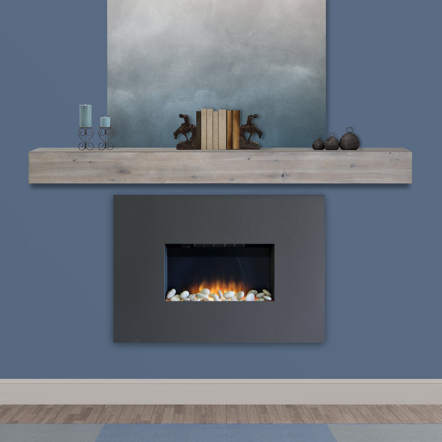 Details: It’s the first piece of furniture in any home. There's nothing as warm and welcoming as a crackling fire in an open fireplace. The dancing flames can lift your spirits and melt away the most stressful day in a matter of minutes. But to truly be part of the home, a fireplace must warm our hearts even when there is no fire in the grate. Pearl does not treat the mantel as trim or molding but as a beautiful piece of furniture that is the focal point of the entire room, the emotional core. It represents roots, heritage and tradition. Furniture is arranged around it, precious treasures are displayed on it, and it provides balance and stability to the entire room. Pearl Mantels features fine furniture quality, stunning details and classic designs that will enhance any decor. 100% Acacia wood. This durable hardwood is prized for its strength, lustrous finish and varied shades. No two pieces will look the same due to the natural ribbon grain, distressing, knots and splits, all characteristics of Acacia wood. Finished with a natural weathered gray stain that showcases the beauty of the wood. Hollow in the back for ease of hanging. The ample nine inch shelf depth allows plenty of display room. Mitered hanger board assembly included for easy installation. Top Shelf Length: 72" Bottom Base Length: 72" Top Shelf Depth: 9" Bottom Base Depth: 9" Overall Height: 5" Weight 55 pounds. Look for the pearl inlay that graces the right hand side of the shelf as proof that you have received an authentic Pearl Mantel.