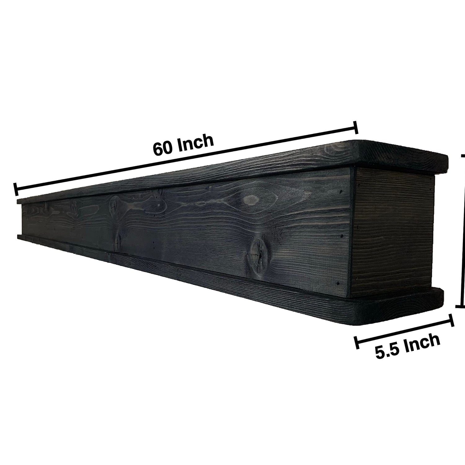 Rustic Mantle | Fireplace Mantel for Decor | Wood Mantel Shelf | Made in USA | Floating Shelf | Farmhouse Fireplace Surround | Long Shelf for Fireplace (Weathered Black, 60 Inch)