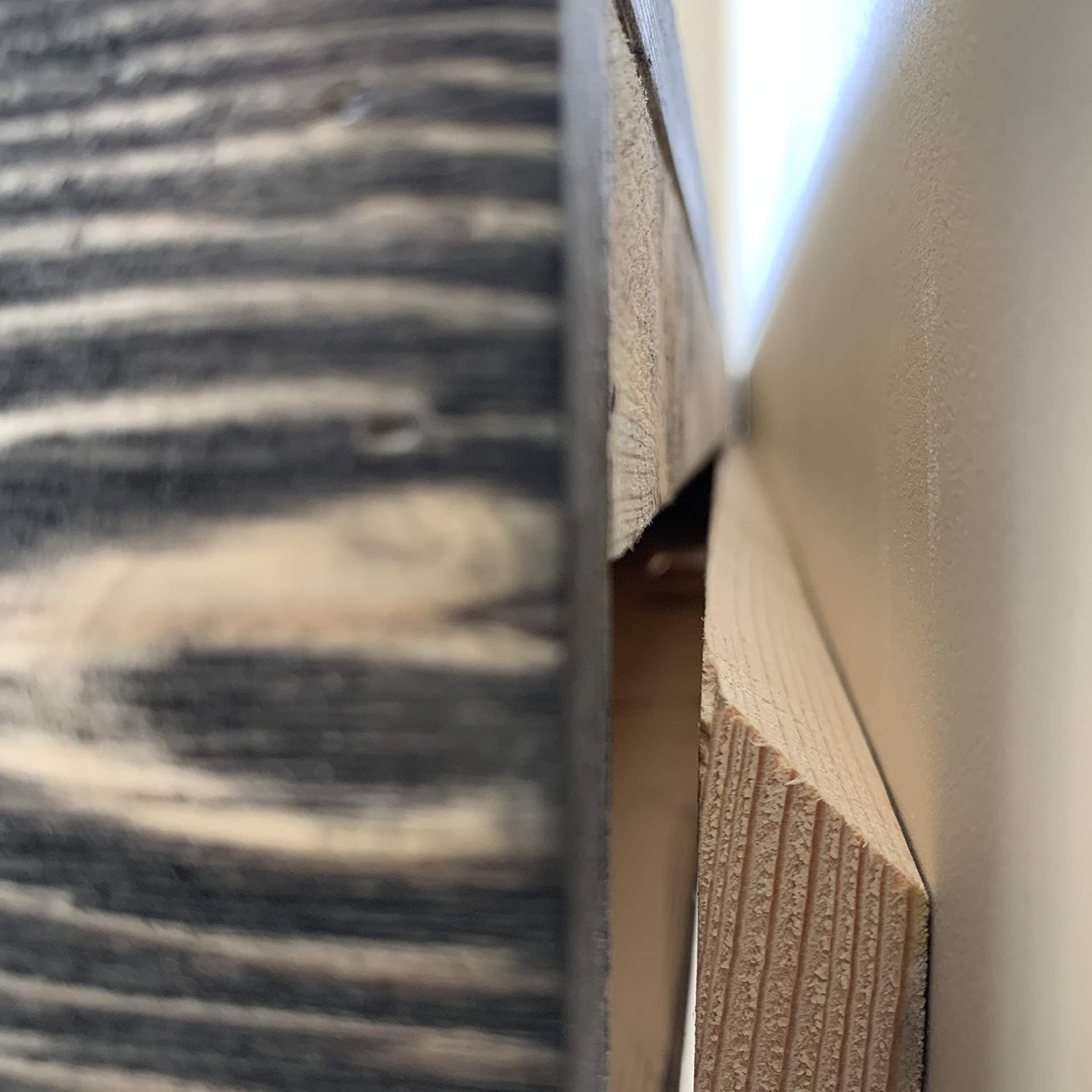 • These mantels have the look of reclaimed wood floating shelves, but have the durability of brand new sustainable wood. Each on looks like a heavy beam but ships light to help the enviroment.