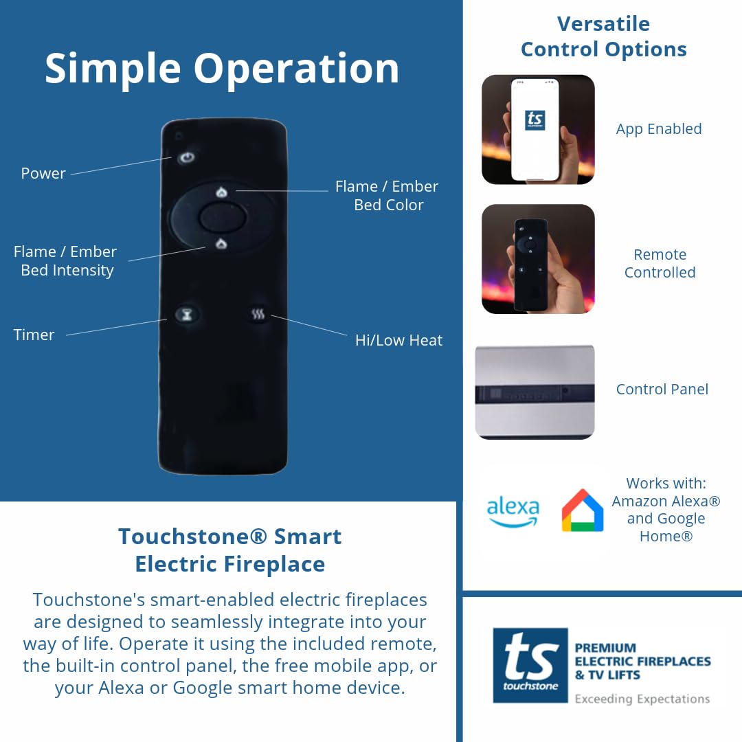 - SMART FIREPLACE: The Sideline Deluxe Stainless is Wi-Fi enabled for smart home connectivity and mobile app controls. Compatible with voice commands through Amazon Alexa and Google Home.