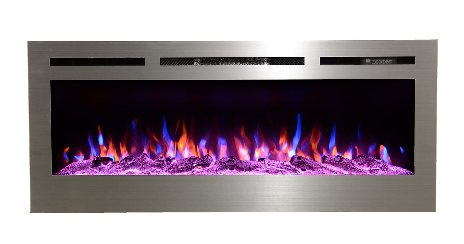 Touchstone Sideline Deluxe -Stainless Steel Smart Electric Fireplace- 50" Wide- Alexa/WiFi-Enabled- in Wall Recessed- 5 Flame Settings- 9 Flame Colors- 1,500W Heater- Log & Crystal Options- 86273