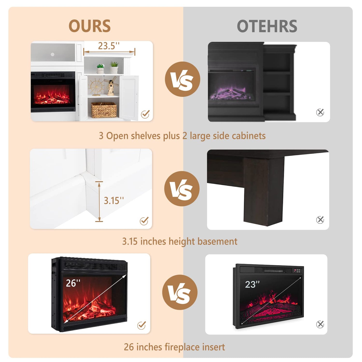 - 【Handcrafted Artistry and Accommodating 79-Inch Width】Experience the beauty of a mantel with a handmade decorative relief sculpture, adding a touch of artistry to your living space. The 79-inch width of the white electric fireplace TV stand accommodates larger TVs, combining style and functionality seamlessly.