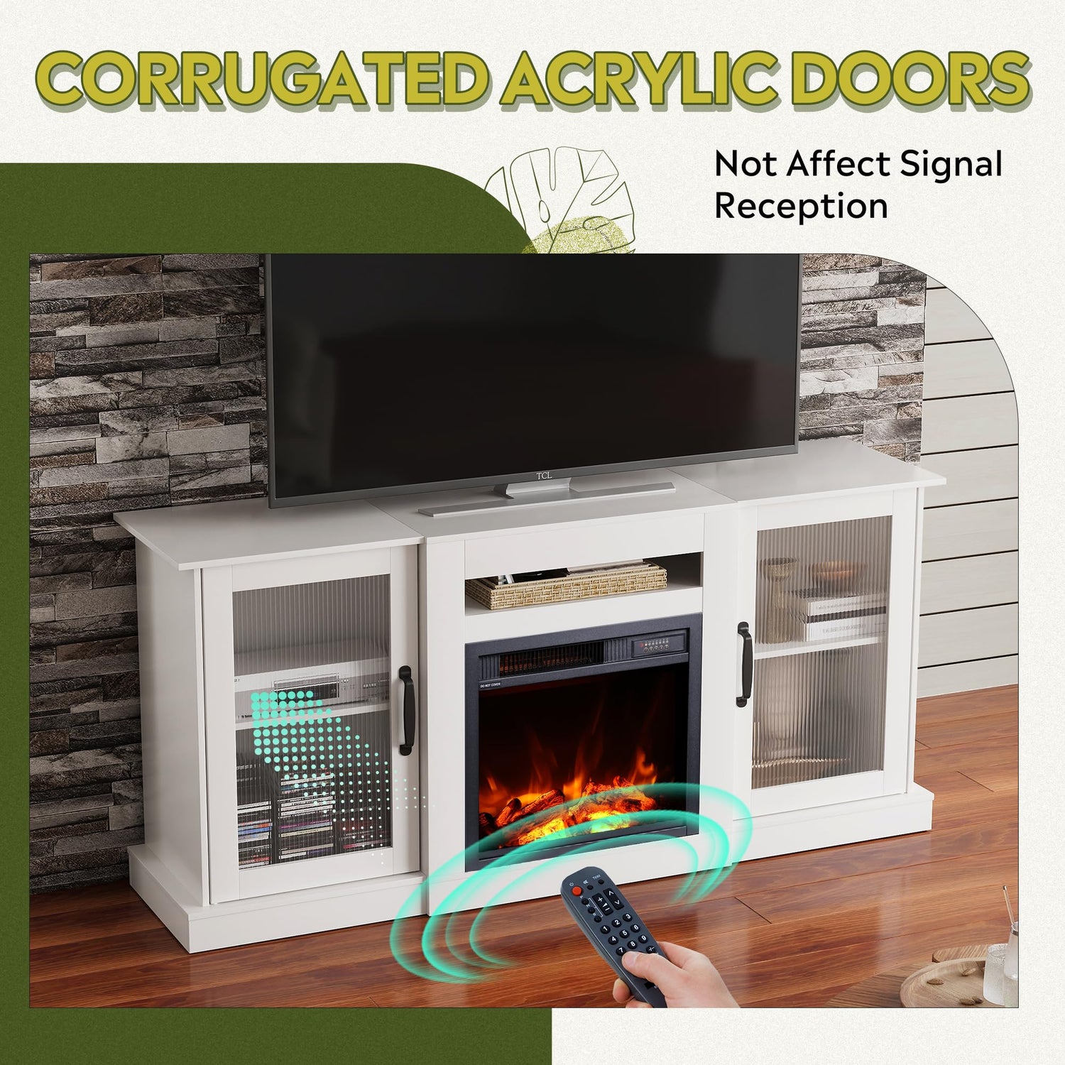 - 【Mordern Style】This Entertainment Center with corrugated acrylic door design, superb light transmission yet non-perspective, allows you to receive remote control signals even when the door is closed, bring more convenience to your leisure time. Metal handles show modern and retro charm, this TV stand will perfectly updated your house decor.