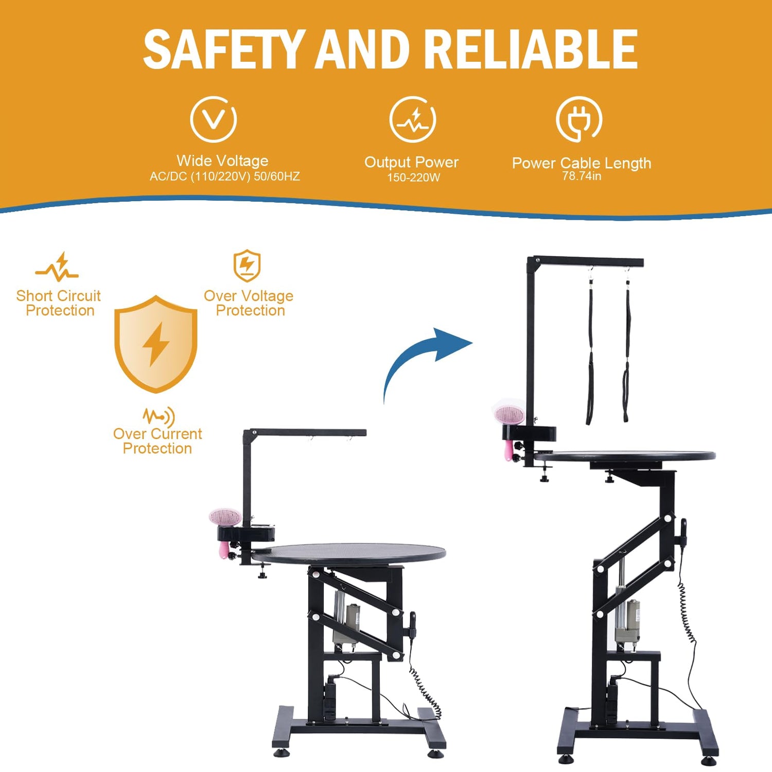 - 【MULTIFUNCTIONAL DESIGN】: The ultimate grooming solution, this dog grooming table offers a portable storage box to keep grooming tools handy and organize the grooming area so groomers can focus on their craft. AC outlet and USB port add-on for easy access to grooming equipment.