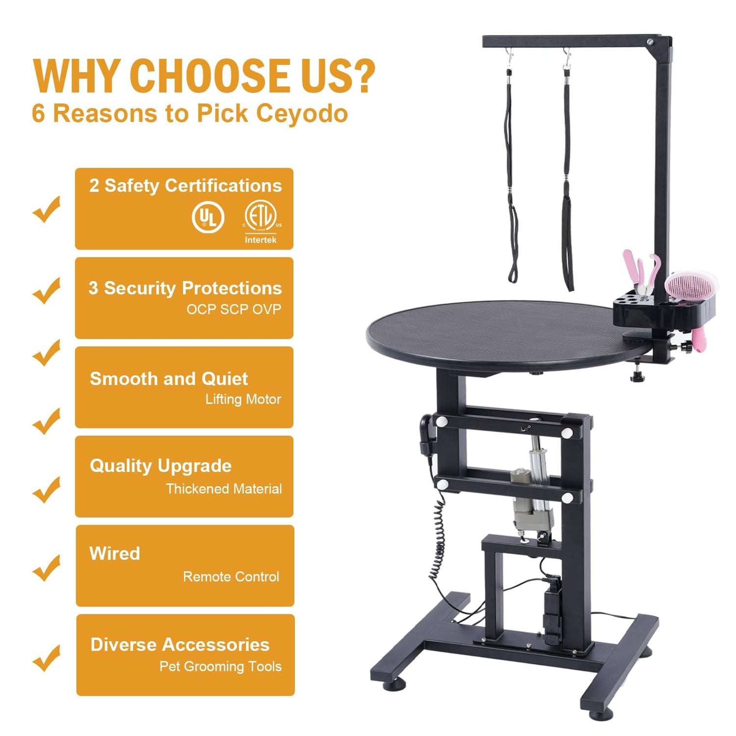- 【CONVENIENT AND EASY】: Groom your pet anytime with this heavy-duty electric lift pet grooming table. Suitable for all kinds of medium and small pets, including poodles, schnauzers, golden retrievers, samoyeds and cats. You can groom, brush, trim and dress your pet on this electric grooming table.
