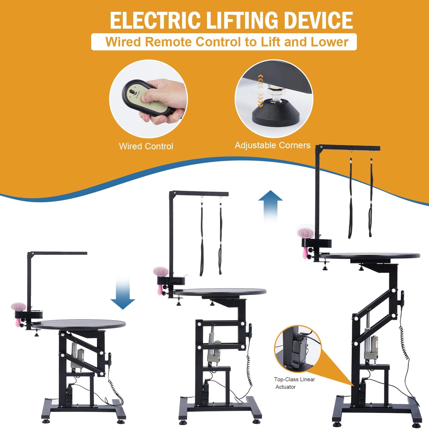 24" Electric Dog Grooming Table with Wired Remote Control, Professional Heavy Duty Pet Grooming Table for Dogs at Home, Adjustable Overhead Arm & Tool Organizer, Small Pet Grooming Station