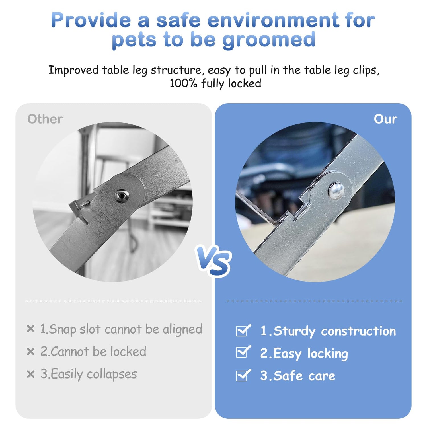 - 【Safe & Stable】Made from high-quality materials and featuring a sturdy construction, our pet grooming table ensures your pet's safety and comfort during the grooming process. The anti-slip surface and rubber feet enhance stability, allowing your pet to stand confidently.