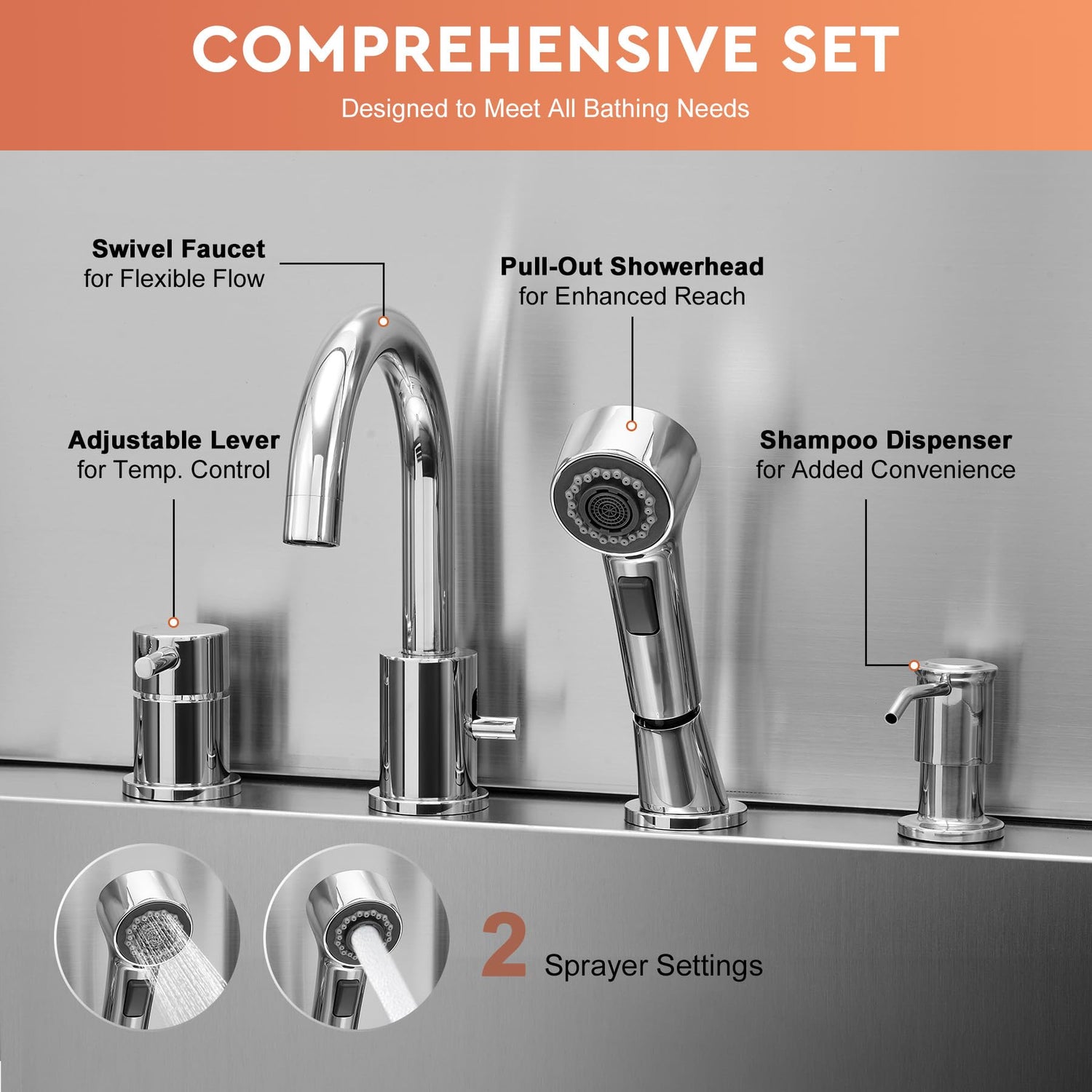 - Enhanced Comfort: Tailor the perfect temperature for your furry friend's sensitive skin with our adjustable faucet. With our built-in shampoo dispenser and convenient pull-out showerhead, getting your pet squeaky clean from nose to tail is a breeze