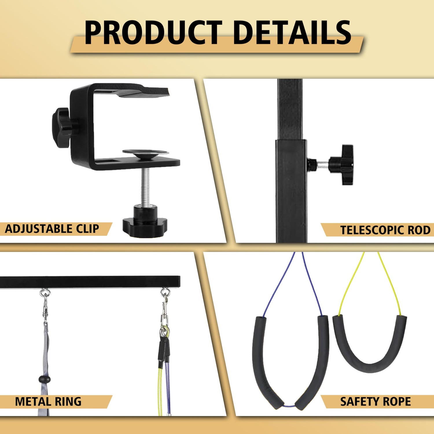 Dog Grooming Arm with Metal Clamp - Adjustable Portable Dog Grooming Table Arm for Table with 1 Loop Noose & Two No Sit Haunch Holder,Grooming Restraint for Small Medium Dogs