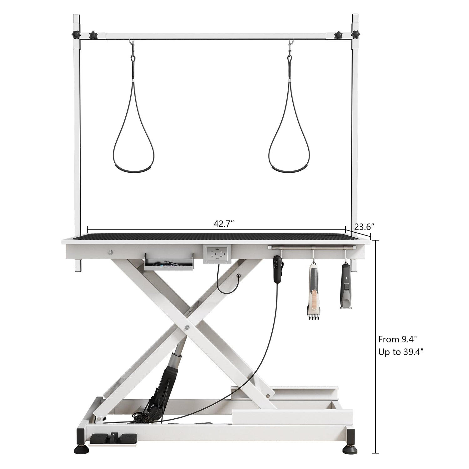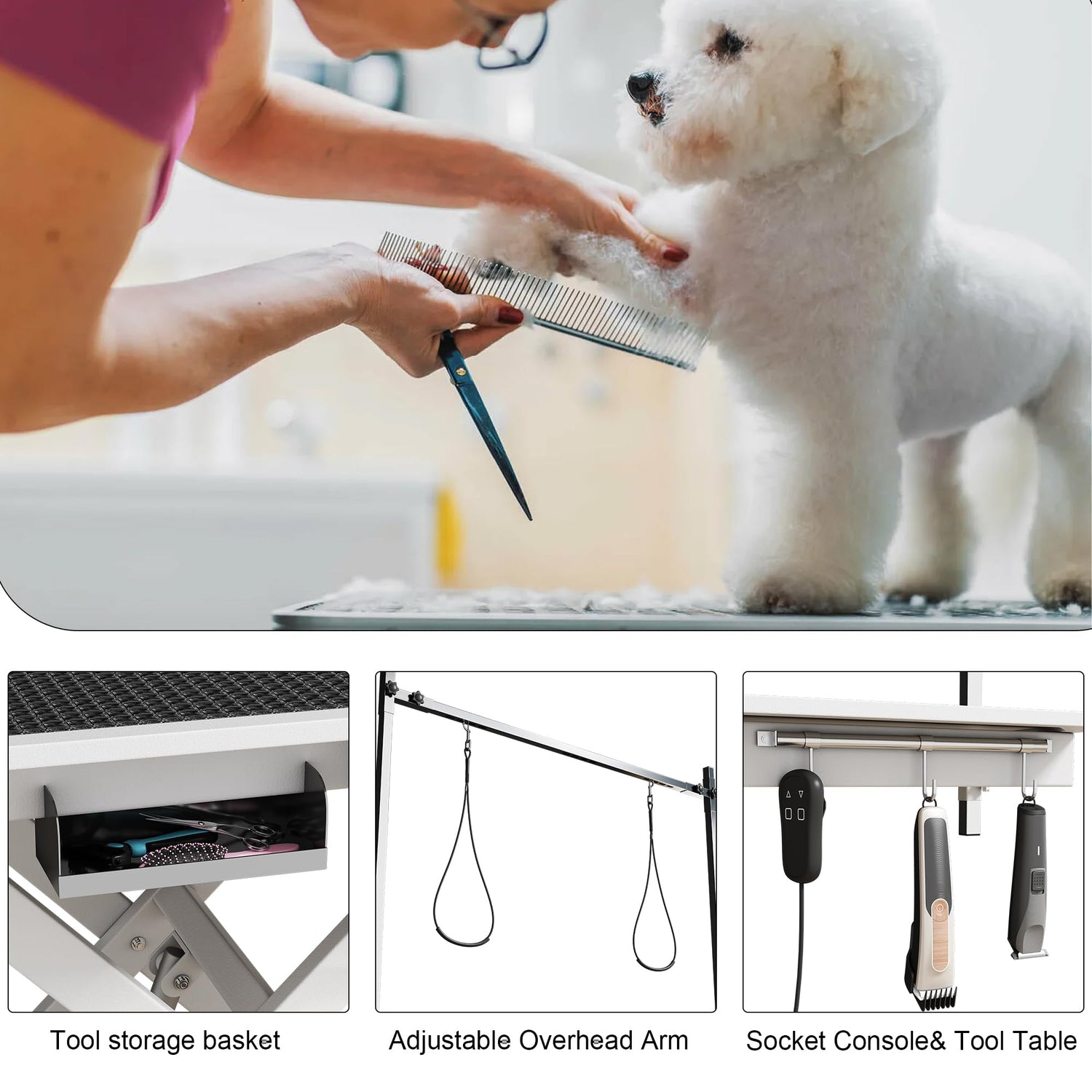 - Professional Design: Durable X-style electric lift mechanism, designed to last and perform under heavy use. High Load Capacity: Supports up to 330 lbs, suitable for all sizes of pets.