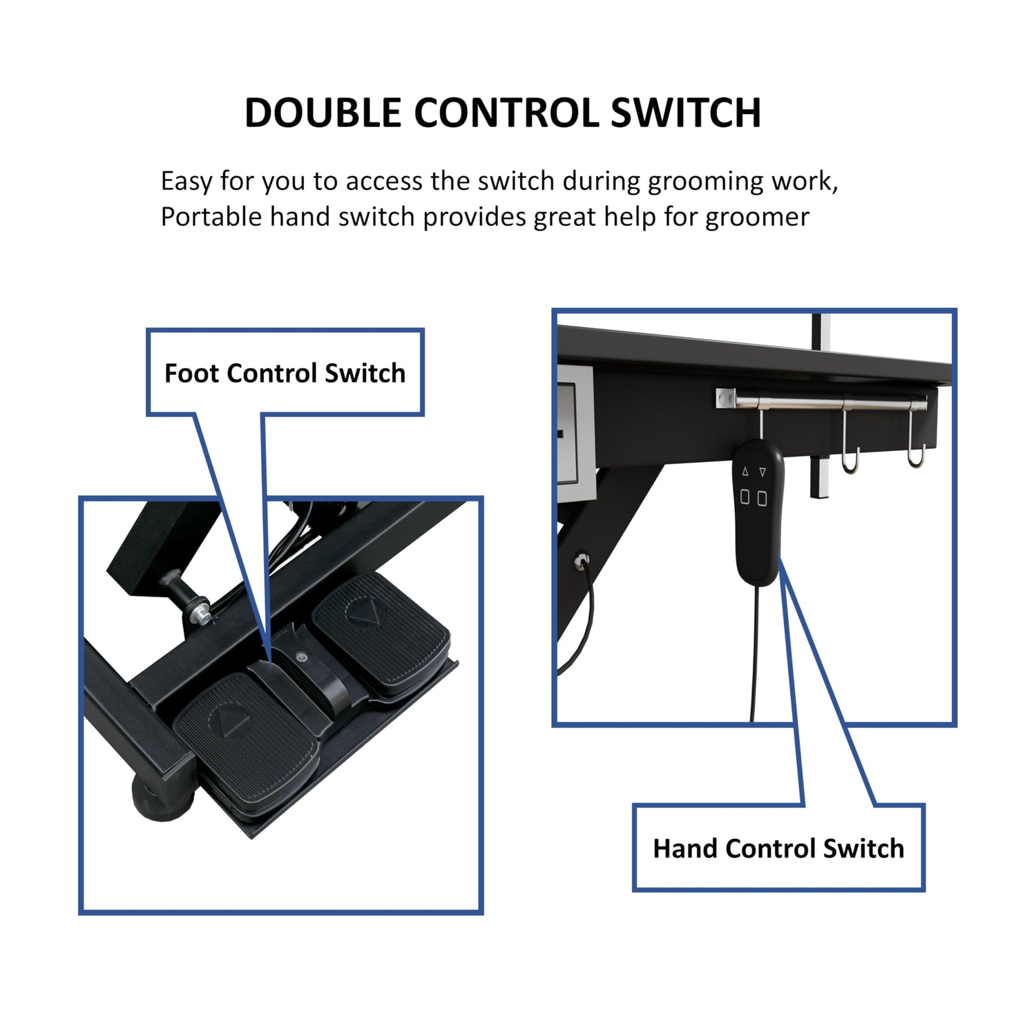 - Convenient Double Controls: A foot control pedals and a portable handle control switch for smooth and stable height adjustment.