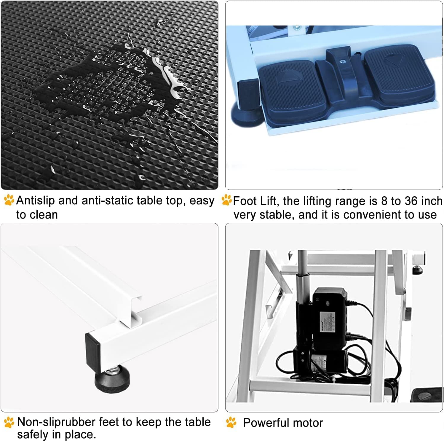 - [Non-slip silicone table top] The countertop is made of durable silicone rubber. The detachable silicone countertop is soft to the touch and easy to clean. The leg level is used on uneven floors. It is a professional-grade grooming table for pet salons.