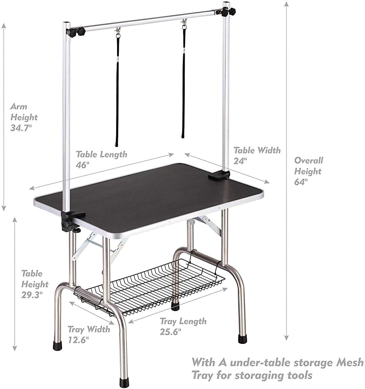 - 【Solid and Durable Grooming Table】The Pet Grooming Table is made of stainless steel frame, MDF board and PVC feet pad.Table Size: 46 x 23.8 x 29.3’’ (LxWxH).Max. Weight Capacity:330 Lb.