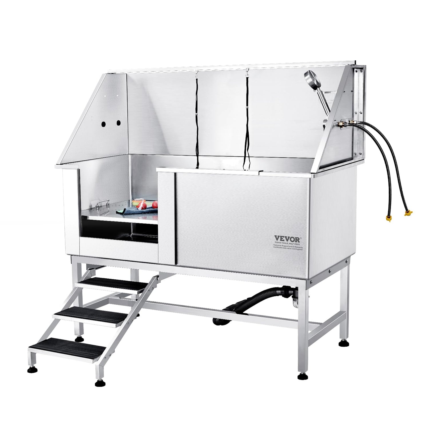 VEVOR 62" Pet Dog Bathing Station w/Stairs, Professional Stainless Steel Dog Grooming Tub w/Soap Box, Faucet,Rich Accessory,Bathtub for Large,Medium,Small Pet, Washing Sink for Home(Left)