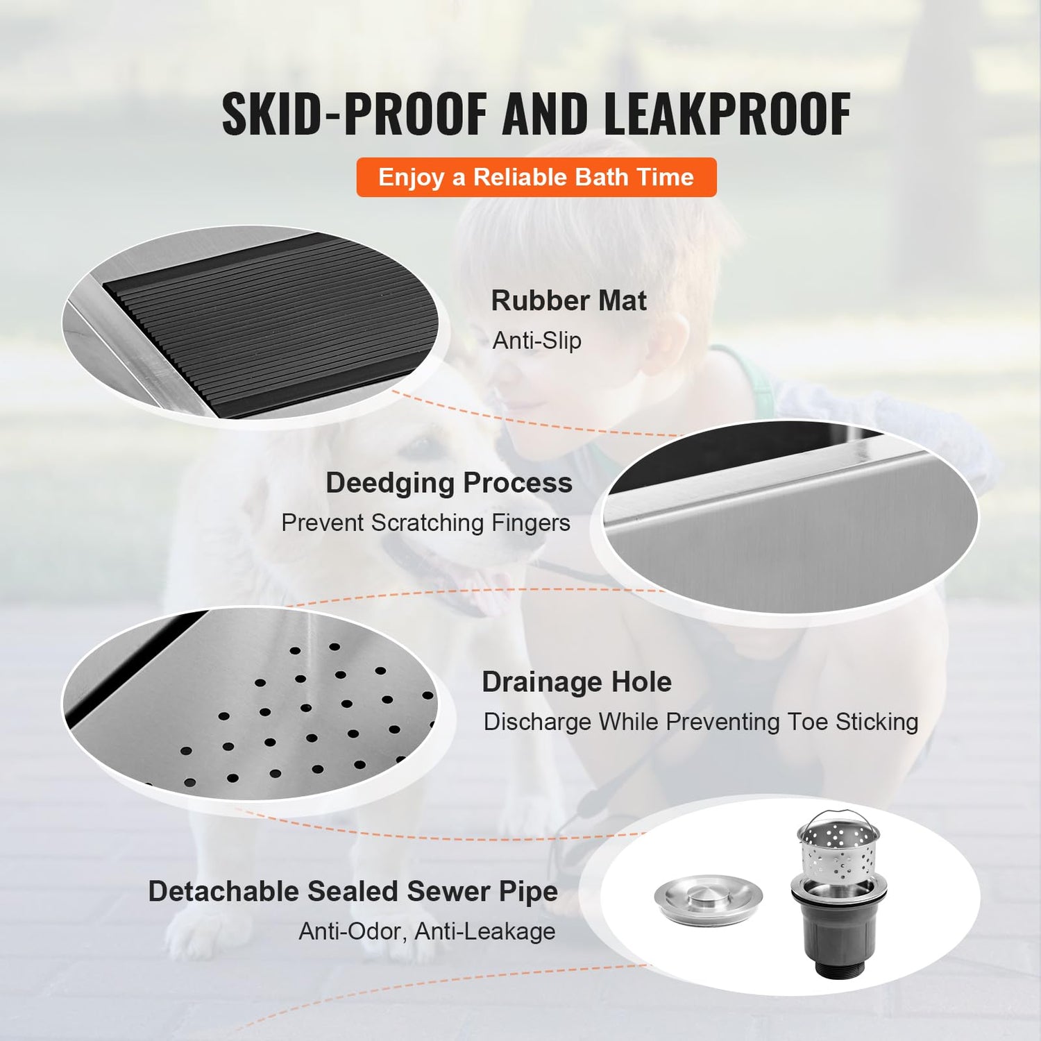 - All-in-One Design: Equipped with upper and lower non-slip ramps and a versatile shower system. You can place pet cleaning supplies in the soap dish, and the sealed latch won't leak water, providing you with a worry-free bathing experience.