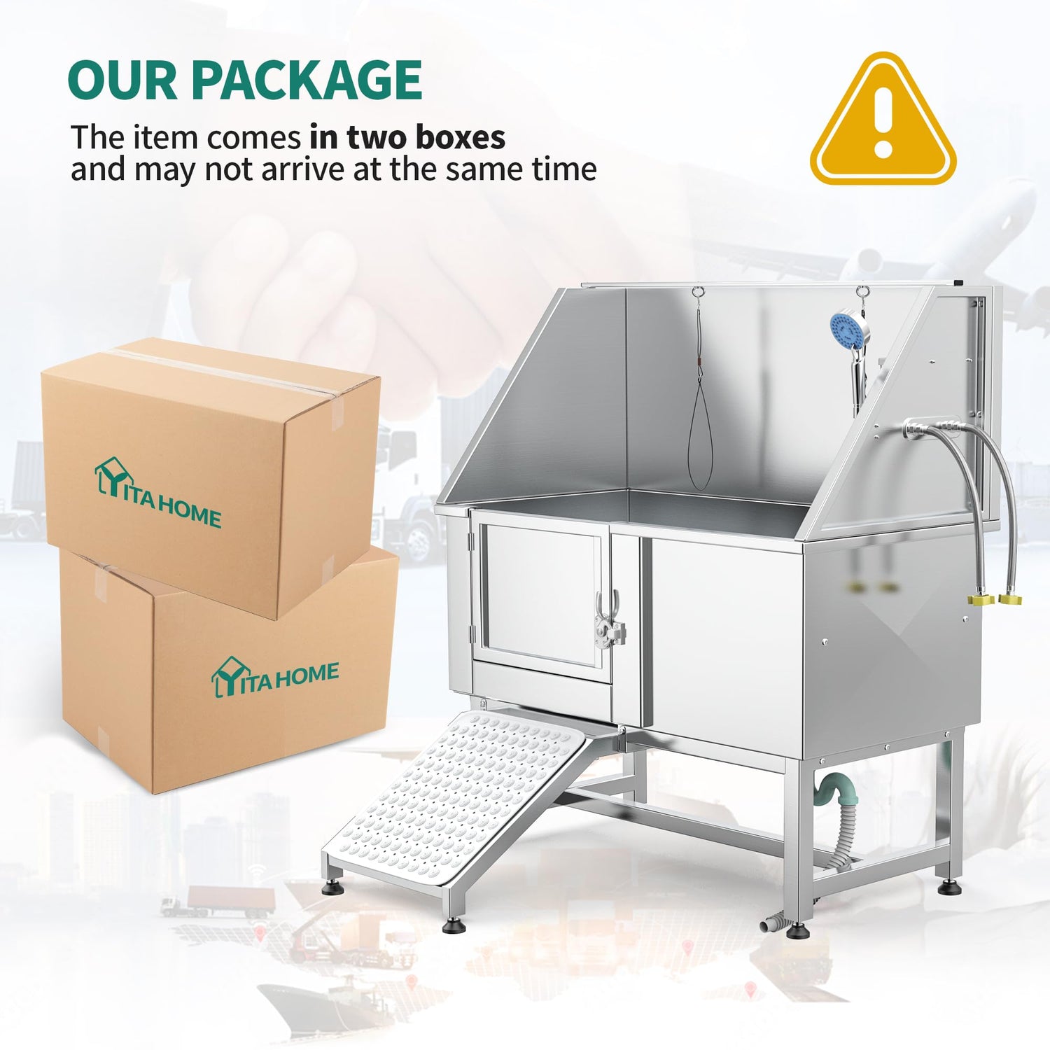 - Versatile Application: The large pet tub will be shipped in two packages; You'll be pleasantly surprised by the practicality of this pet wash station; Ideal for both indoors and outdoors to offer convenience and performance for both personal and commercial pet grooming
